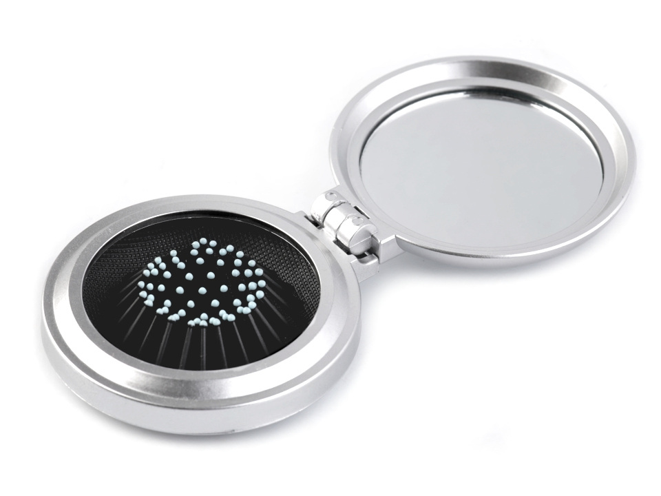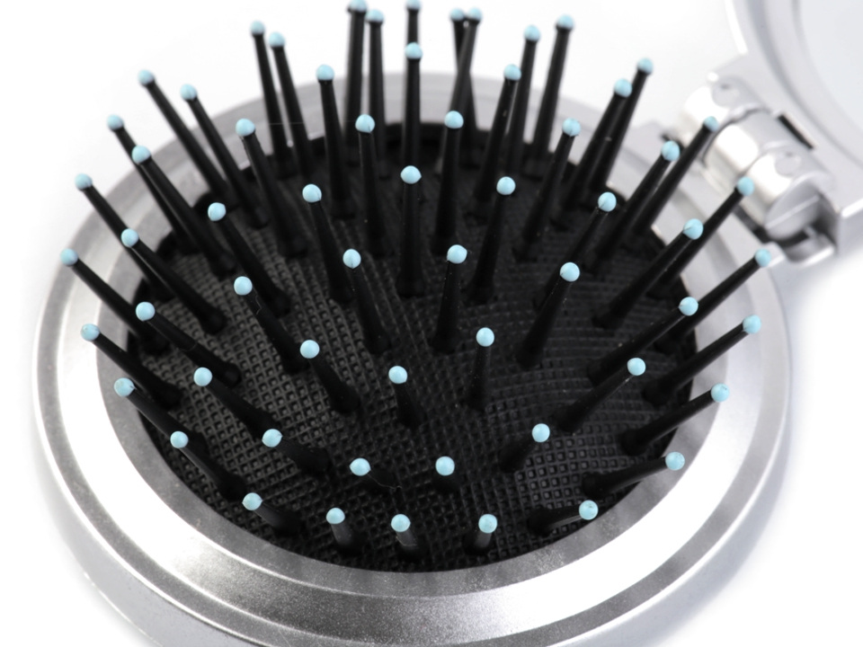 Do kabelky nebo na cesty je ideální kompaktní skládací kartáč se zrcátkem.