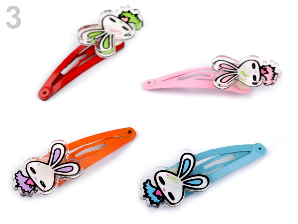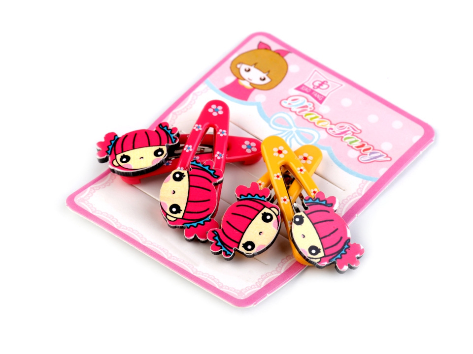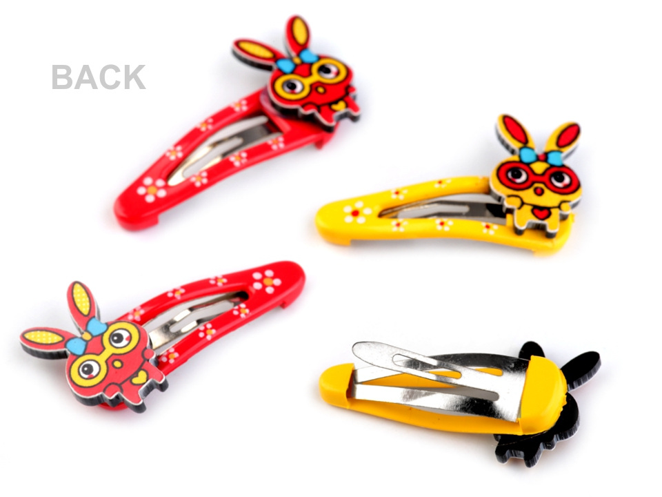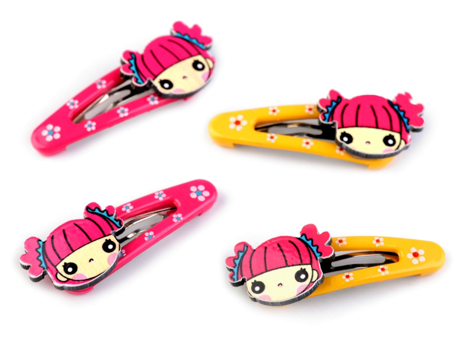 Drobné sponky s ozdobou, která má barevný potisk, potěší především malé parádnice. Vesele dozdobí účes.