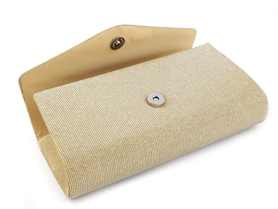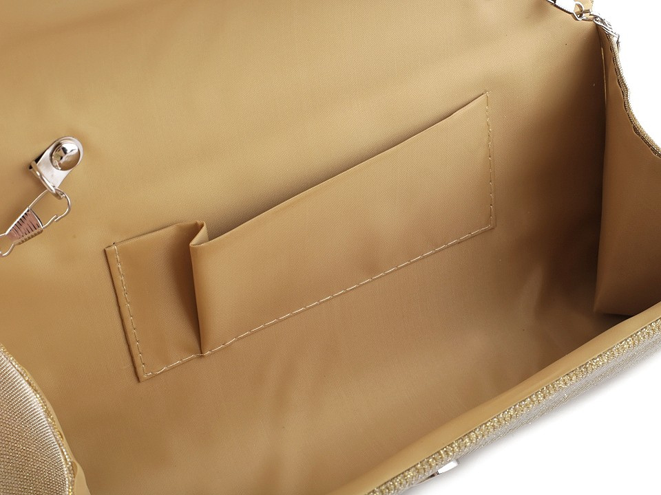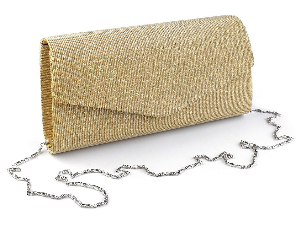 Třpytivé lurexové psaníčko využijete na slavnostní události, kde efektně doplní váš outfit. Uvnitř má polyesterovou podšívku a malou kapsičku na drobnosti. Zapíná se na magnet. Ke kabelce patří odepínatelný řetízek. Psaníčko můžete nosit s řetízkem přes rameno nebo bez něj jen tak v ruce.