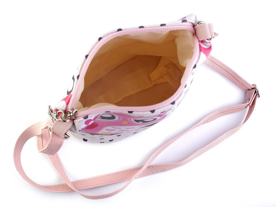 Tašku se sovičkami si zamilují malé i větší slečny. Schovají do ní své poklady a nezbytnosti na procházky. Celá taška se uzavírá na zip. Potisk je oboustranný. Taška má nastavitelný popruh.