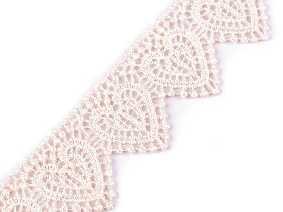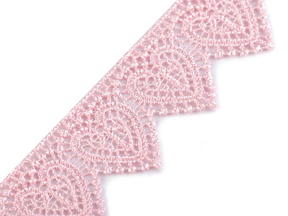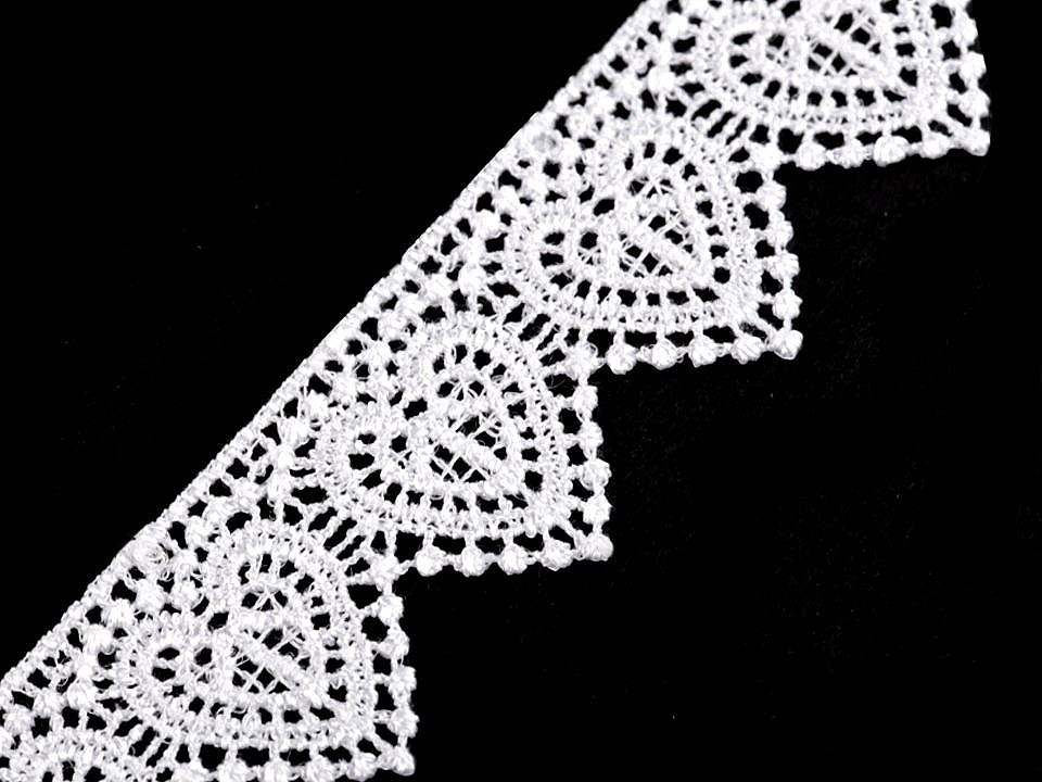 Romantická vzdušná krajka zobrazuje vzor se srdíčky.