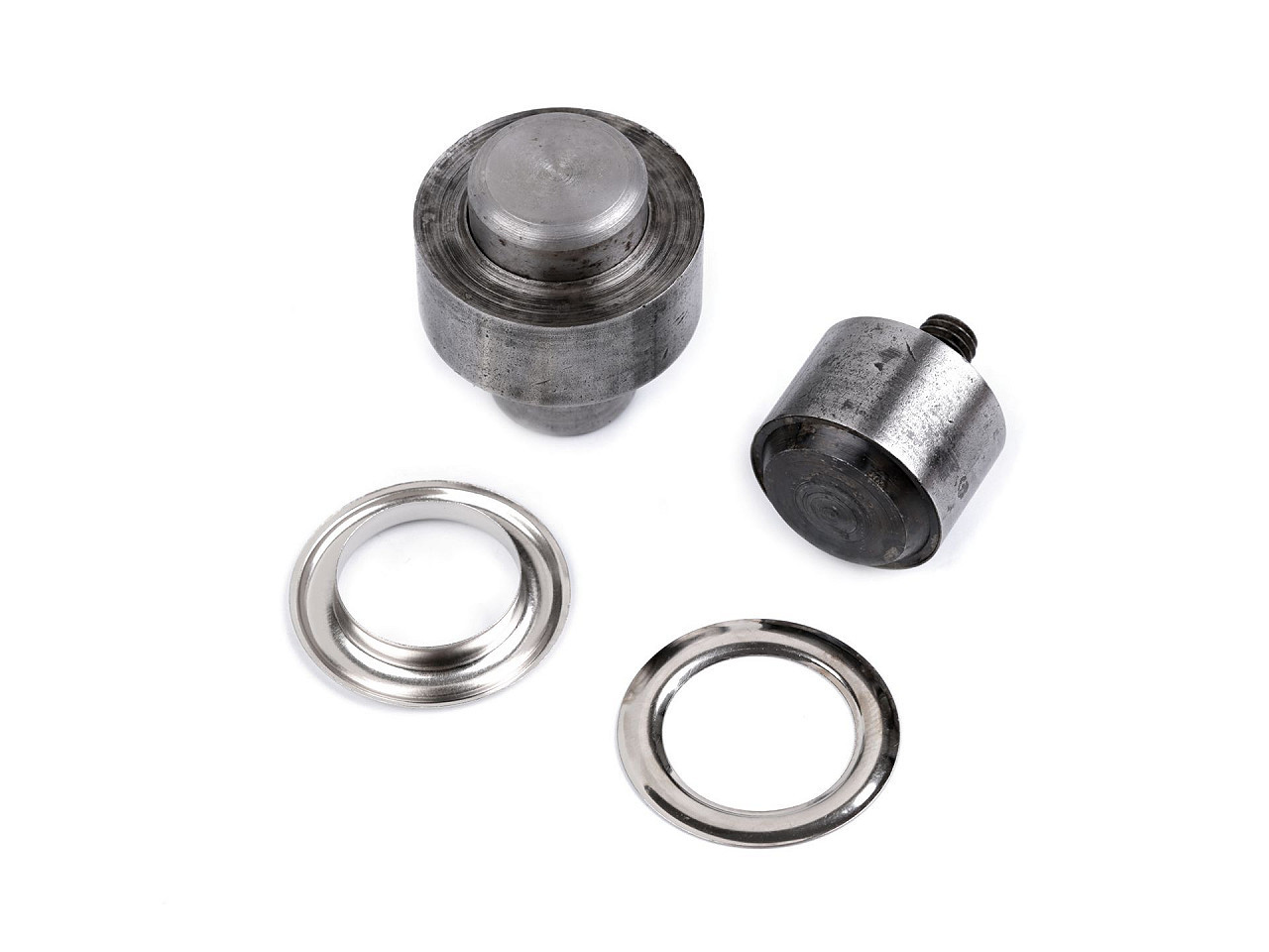Kovový piston je určený k nýtování průchodek a se skládá ze dvou částí. Používá se tak, že větší část pistonu umístíme v dolní části lisu a vložíme látku s průchodkou o průměru 14 mm, kterou najdete pod kódem 107692. Druhou část zašroubujeme do horní části lisu.