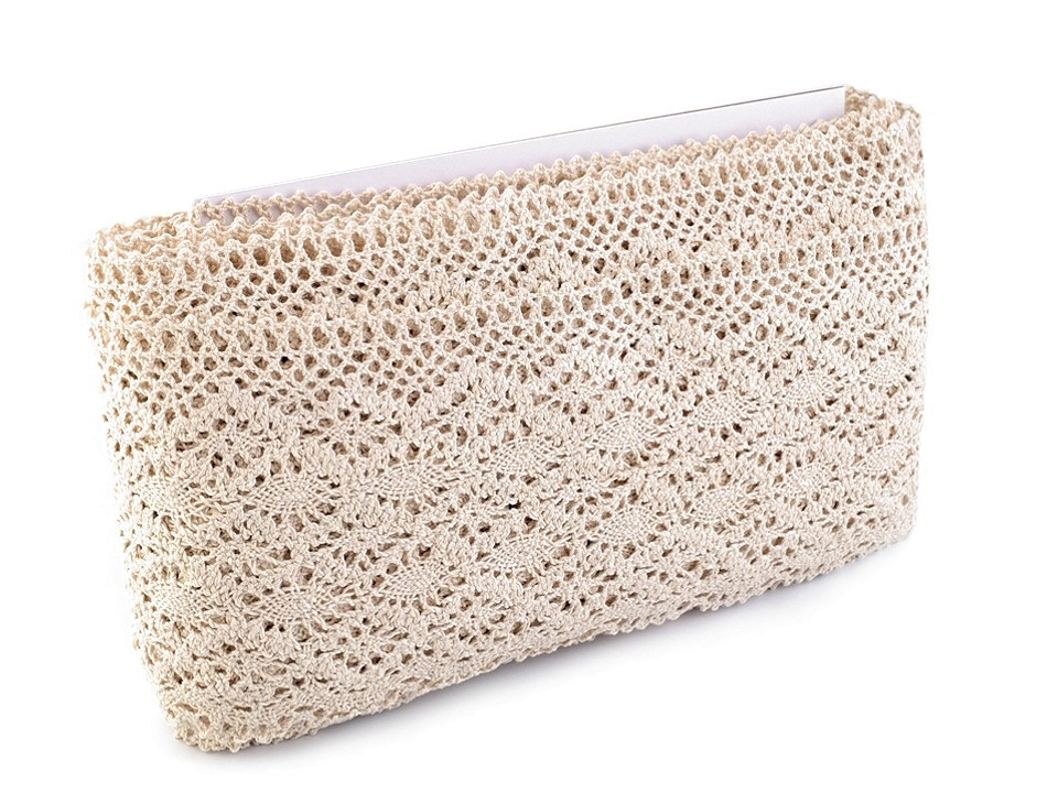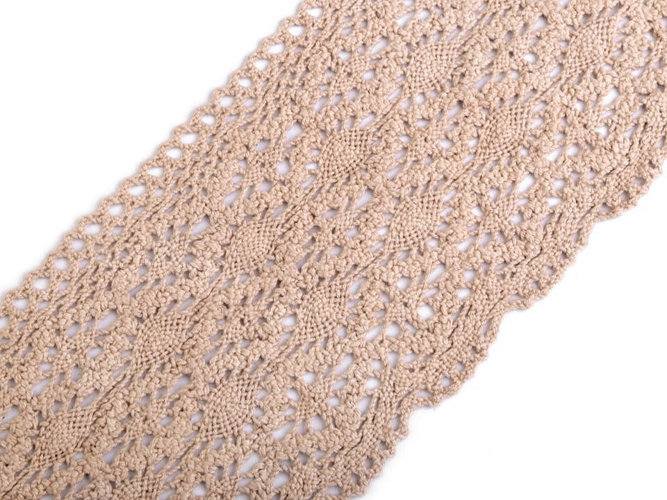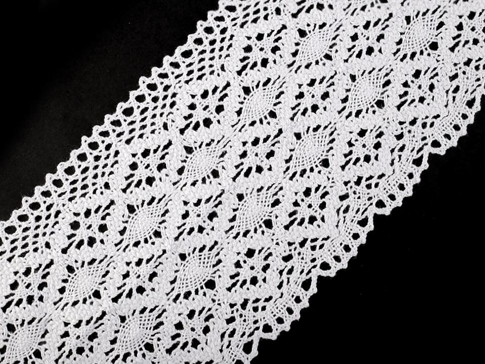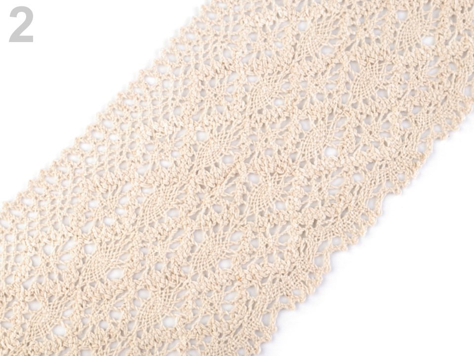 Široká paličkovaná krajka dodá vašim výrobkům a dekoracím nádech vintage stylu. Je pevná, vyrobená z kvalitní bavlny.