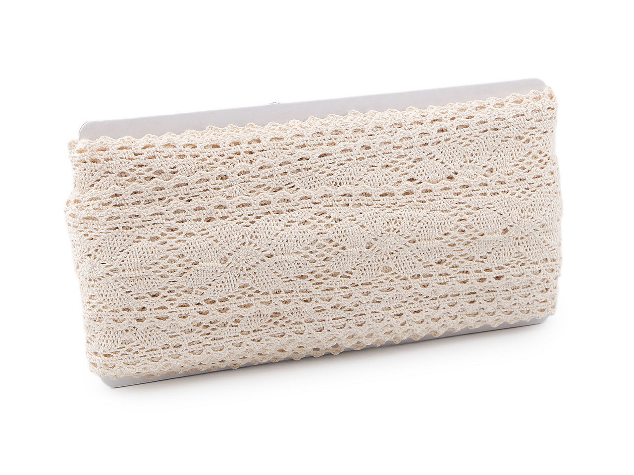Široká paličkovaná krajka se vzorem květů dodá vašim výrobkům a dekoracím nádech vintage stylu. Je pevná, vyrobená z kvalitní bavlny.