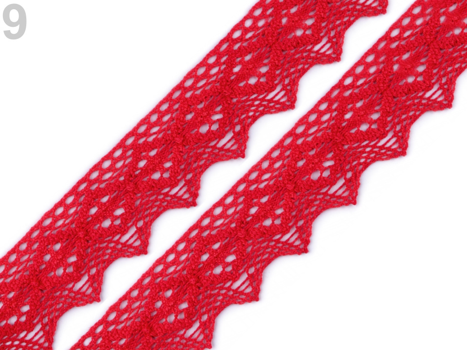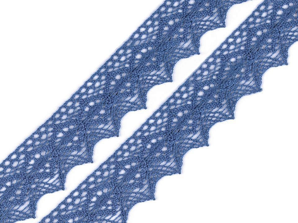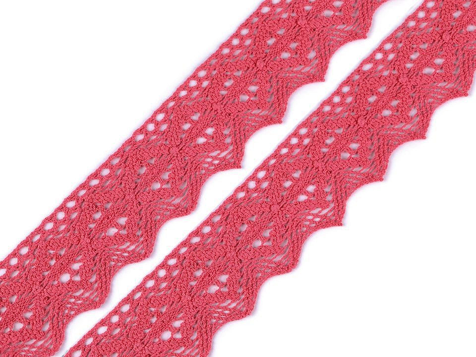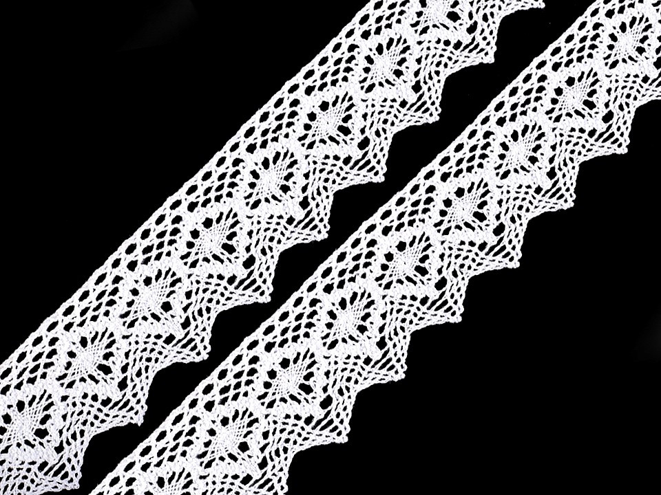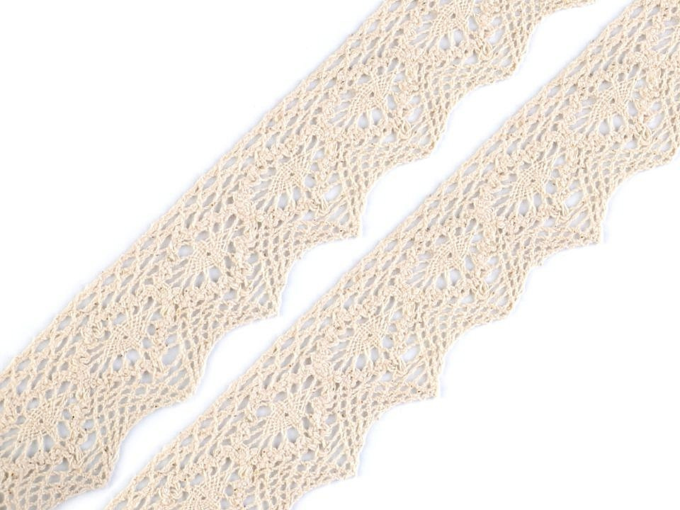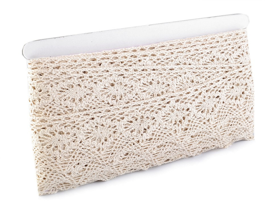 Paličkovaná krajka se zajímavým vzorem je vyrobená z bavlny. Doporučujeme ji žehlit přes tkaninu.