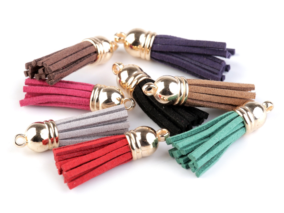 Zajímavý přívěsek je vyrobený z třásní, které jsou zasazeny v plastovém kaplíku s očkem. Můžete ho kamkoli připevnit.