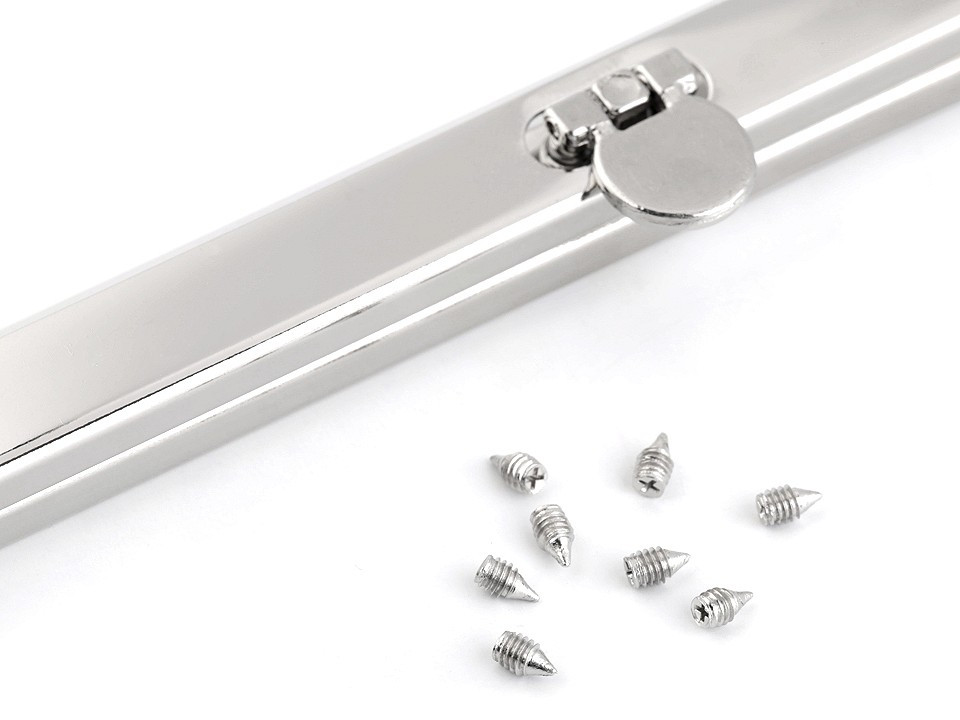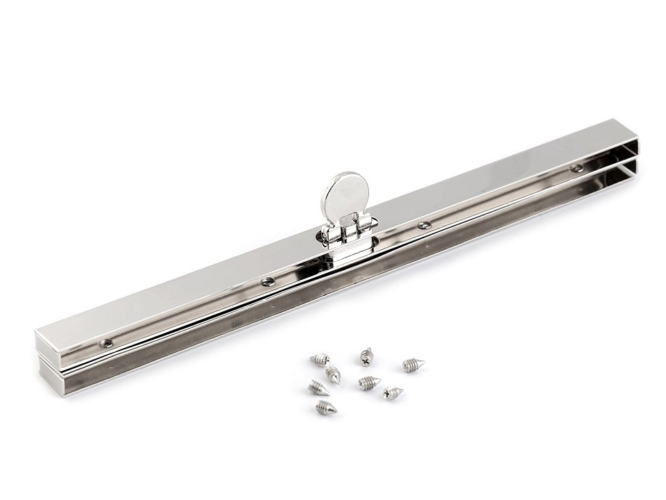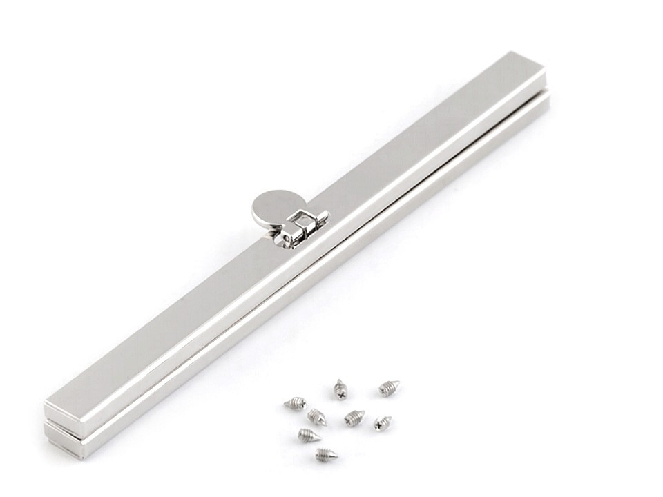 Kovový rámeček využijete na výrobu kabelek. Jedná se o vkládací typ rámečku, kdy se látka vloží dovnitř, zpevní přibalenými šroubky (8 ks) nebo lepidlem (doporučujeme chemoprénový typ lepidla) a kleštěmi se čelisti rámečku stáhnou k sobě.