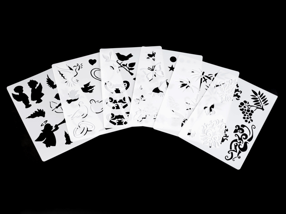 Šablonu doporučujeme připevnit k podkladu papírovou páskou, nebo fixačním sprejem. Můžete ji omýt vlažnou vodou. Dejte pozor abyste hrubým zacházením nepoškodili jemné části.