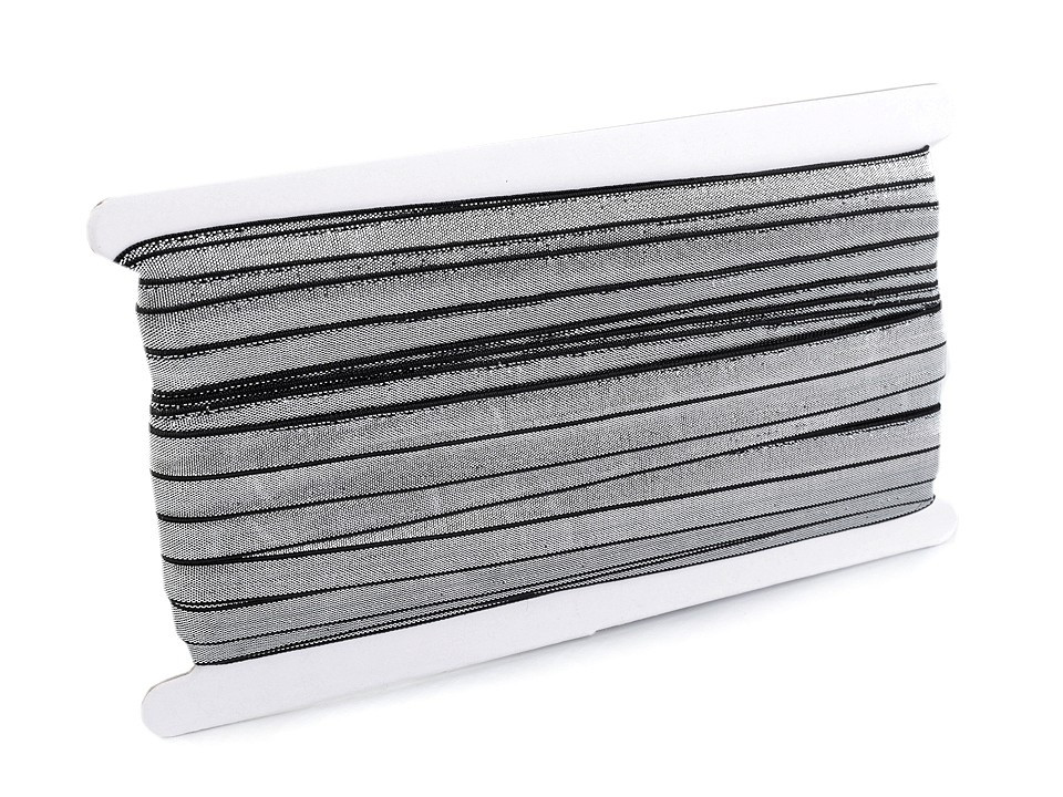 Elegantní pruženka s lurexem je elastická (tažná), po roztažení se vrátí zpět do původního stavu. Lurex zdobí celou šíři pruženky a právě díky němu se krásně třpytí.