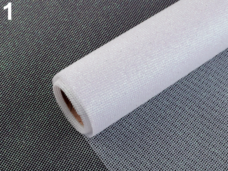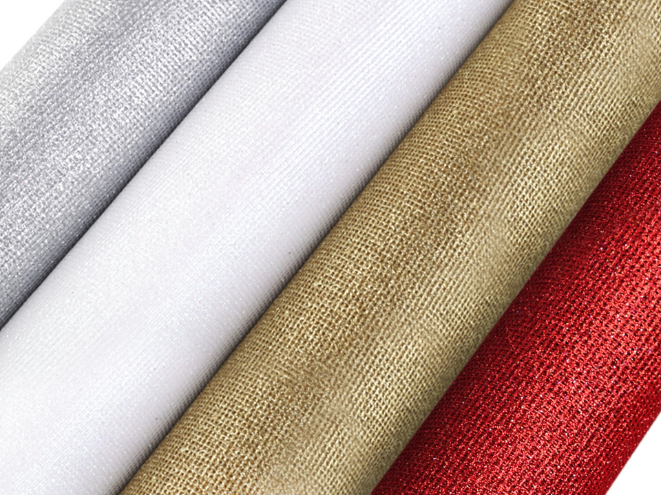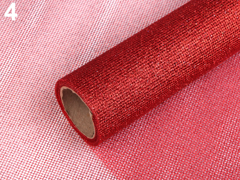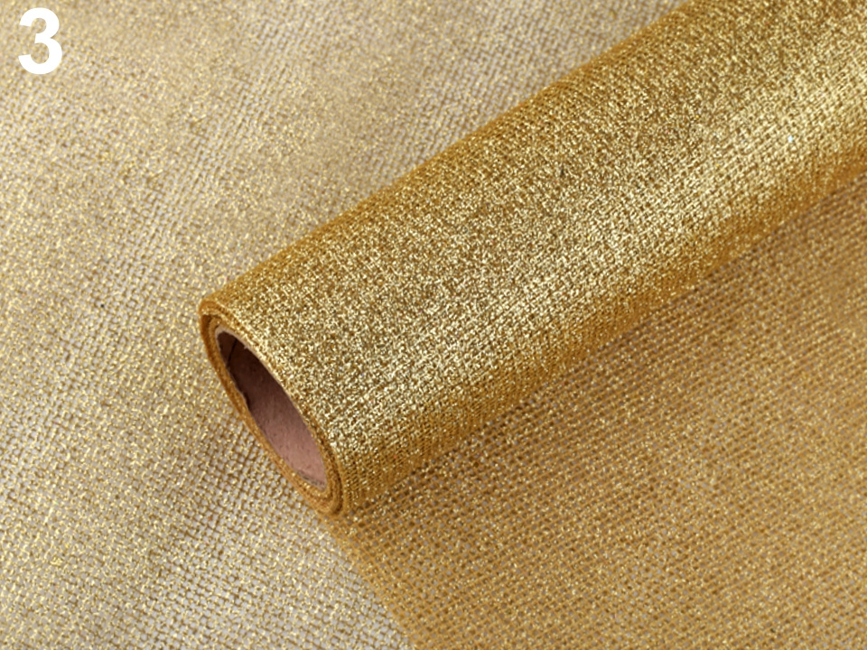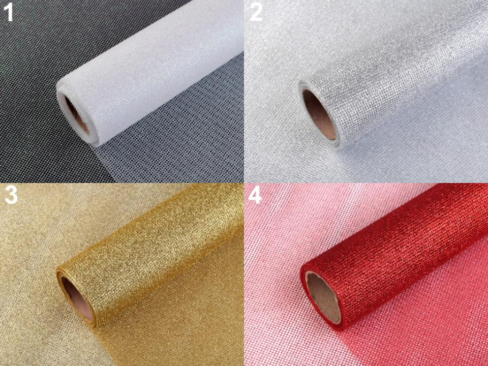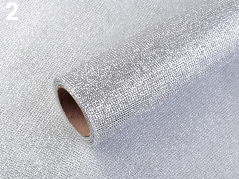 Dekorační metráž má efektní vzhled se třpytivými glitry a lurexem.