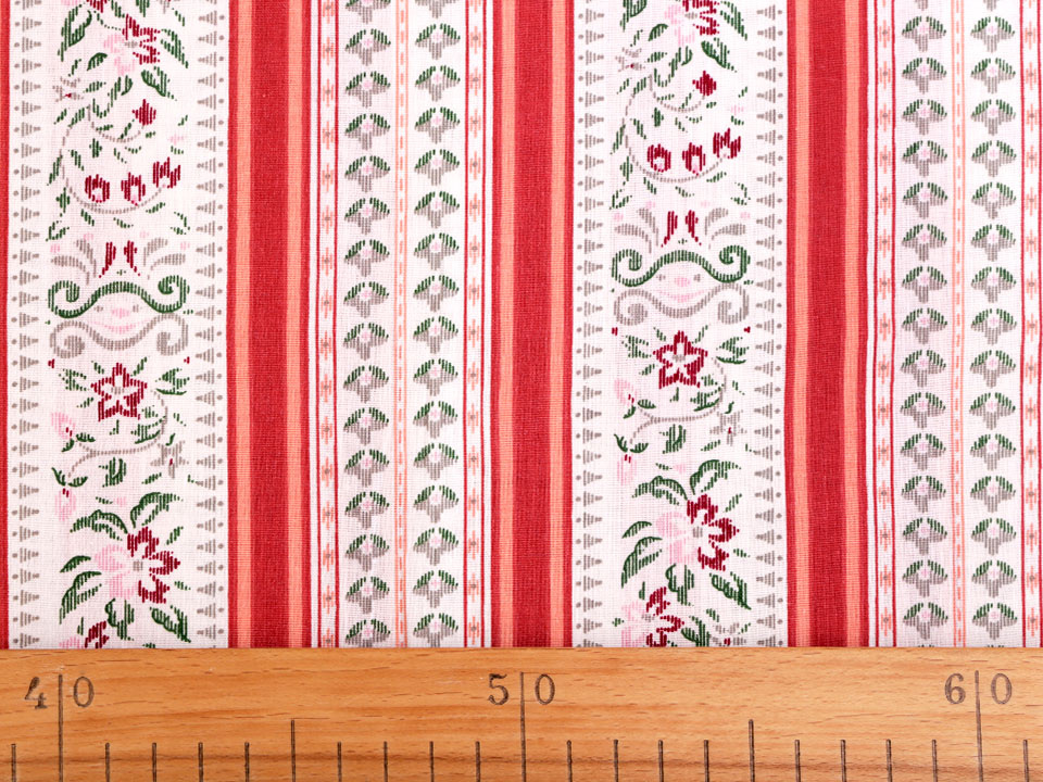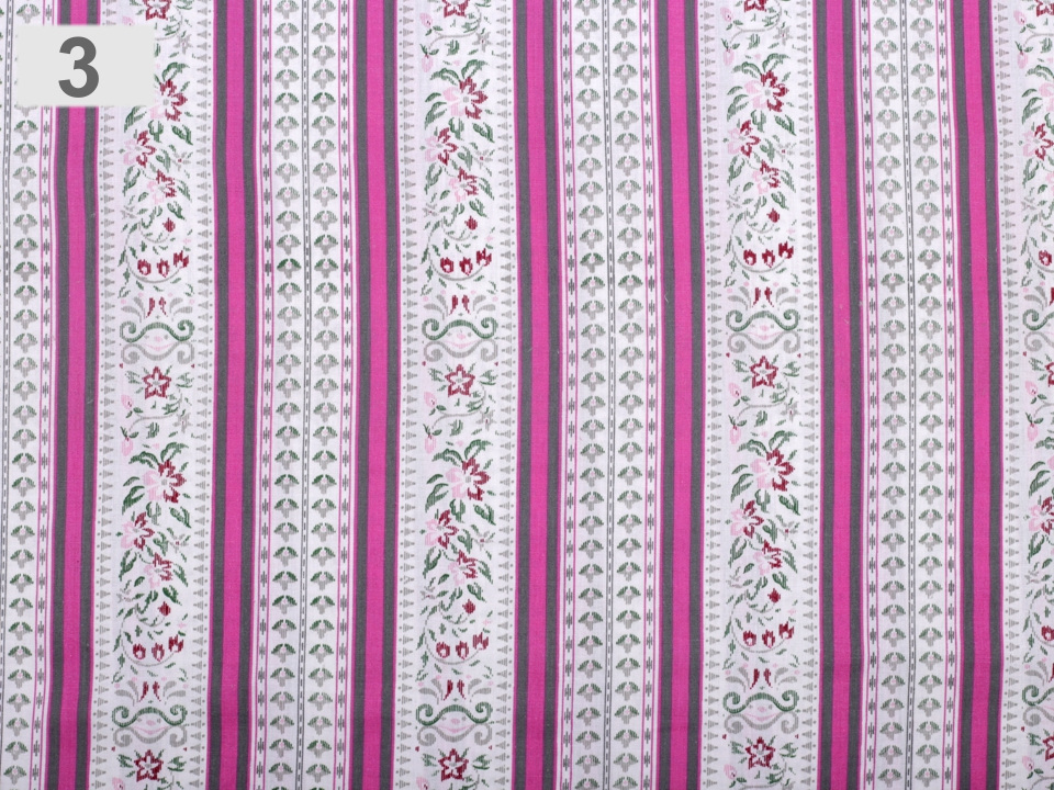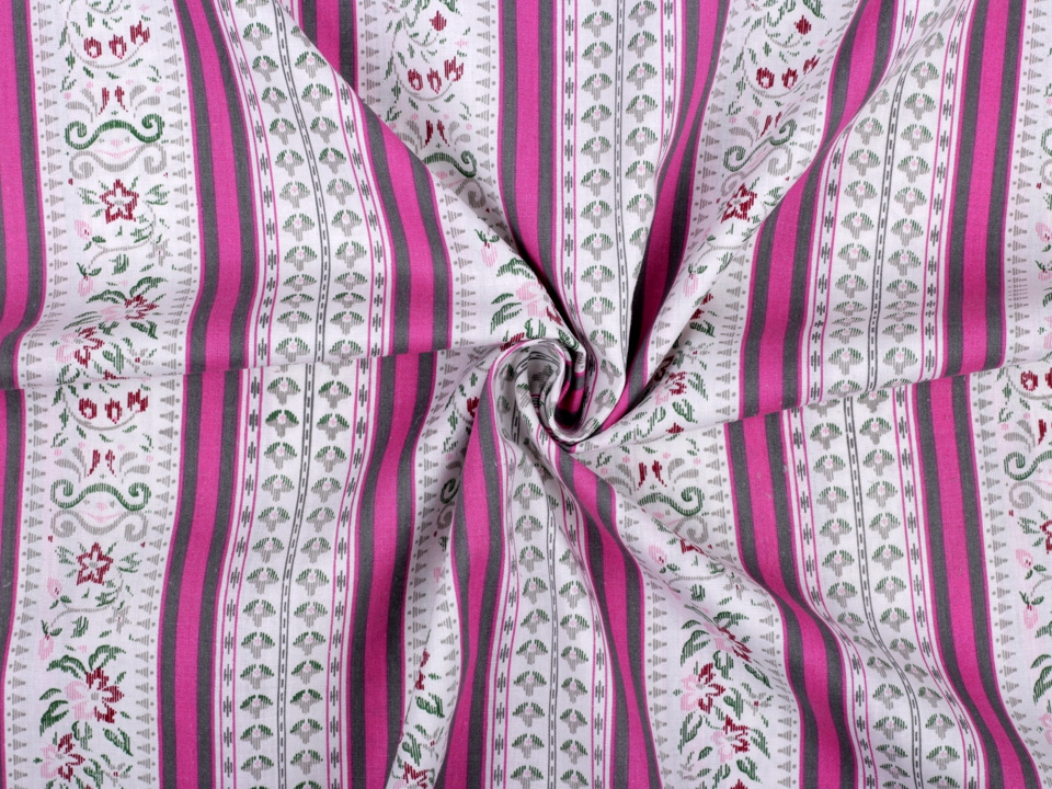 Bavlněná látka s proužky a drobnými květy je příjemná na dotek.