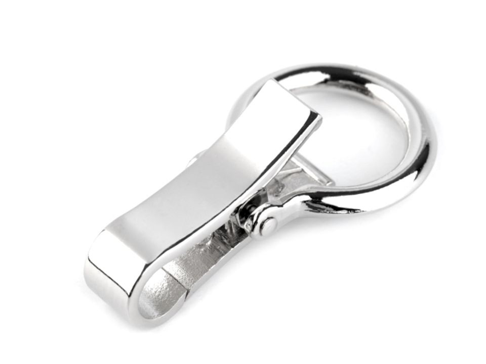 Kovová karabina se skládá ze spony a kroužku. Využijete ji k připevnění popruhů ke kabelkám či taškám, na výrobu klíčenek a vodítek.