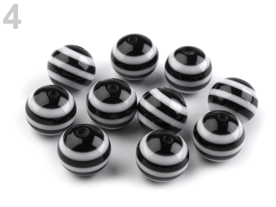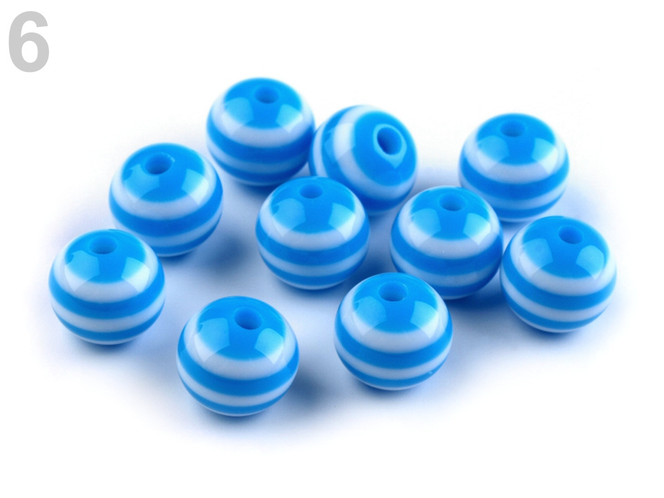Plastové korálky zdobí hravé proužky. Díky svým barevným variacím rozzáří každý šperk.