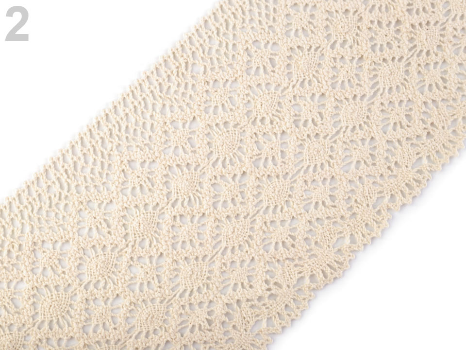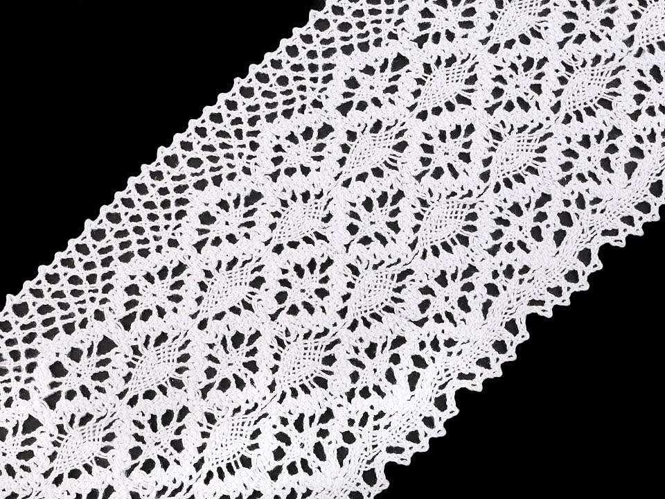 Široká paličkovaná krajka vdechne vašim výrobkům a dekoracím nádech vintage stylu. Je pevná, vyrobená z kvalitní bavlny.