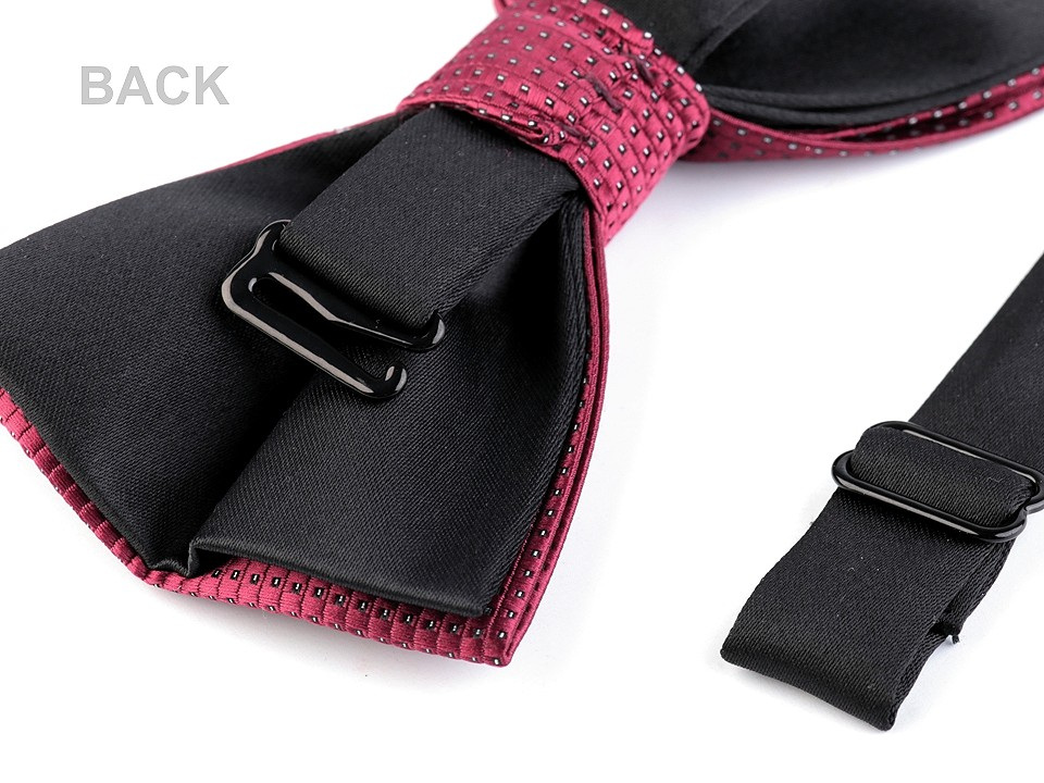 Motýlek je vázaný, padne všem, stačí jen utáhnout nastavitelný pásek kolem krku. Nejdelší délka pásku okolo krku je 50 cm. Zapínání je kovové, pásek je ze saténu.