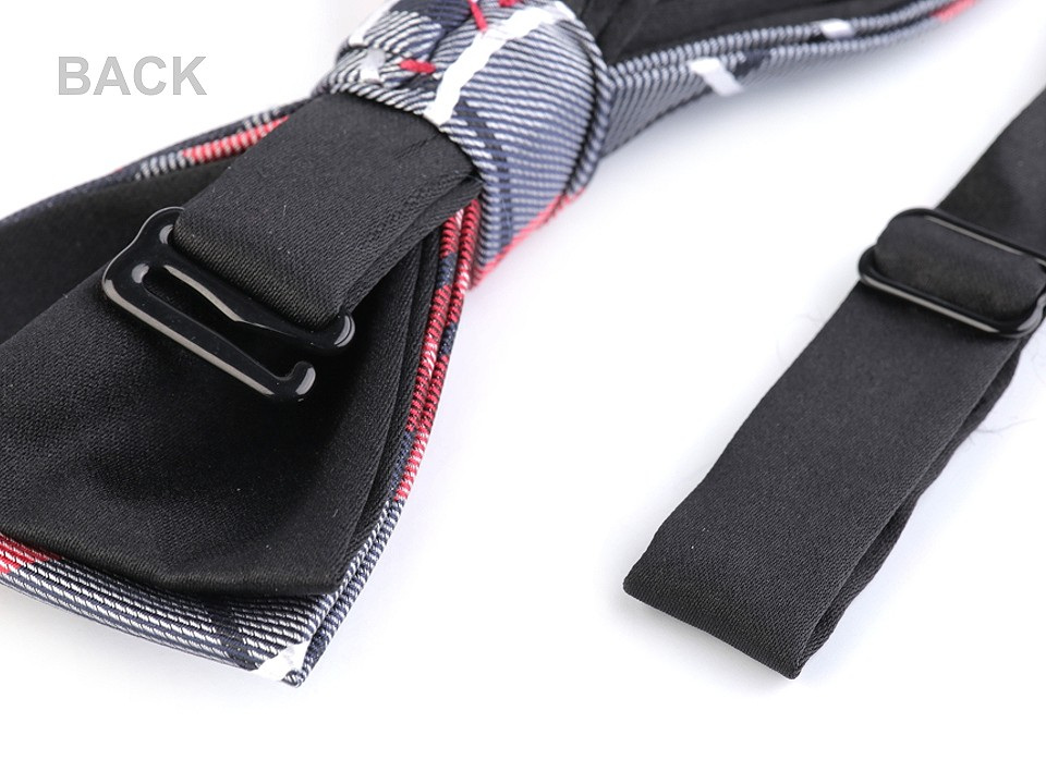 Motýlek je vázaný, padne všem, stačí jen utáhnout nastavitelný pásek kolem krku. Nejdelší délka pásku okolo krku je 50 cm. Zapínání je kovové, pásek je ze saténu.