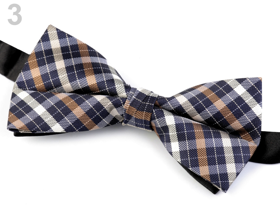 Motýlek je složený ze dvou - spodní je černý, díky němu je tvar pevně vyztužený, horní je se vzorem.