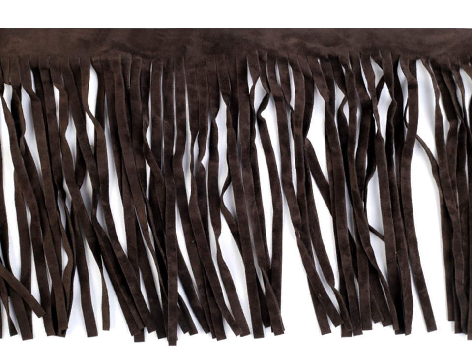 Ozdobné oděvní třásně velice věrně imitují třásně kožené. Na rozdíl od kožených nejsou tuhé, jsou velice jemné a měkké, přijemné na dotek. Skvěle se hodí na ozdobení oděvů a doplňků do etno, boho či country stylu.