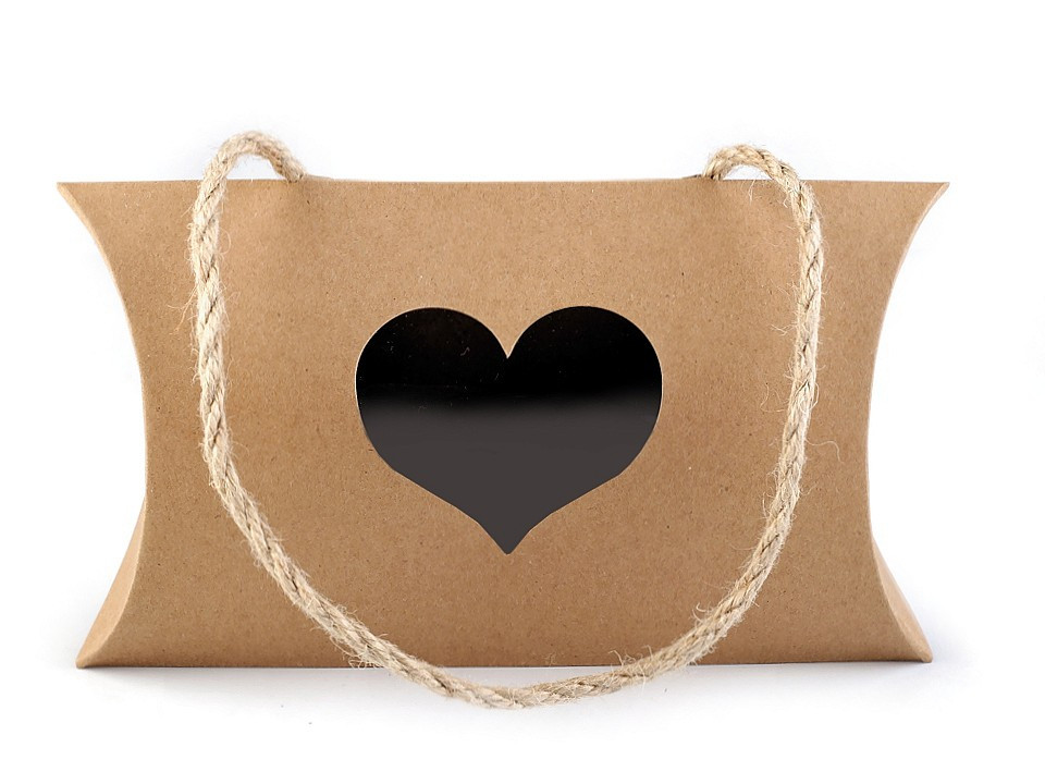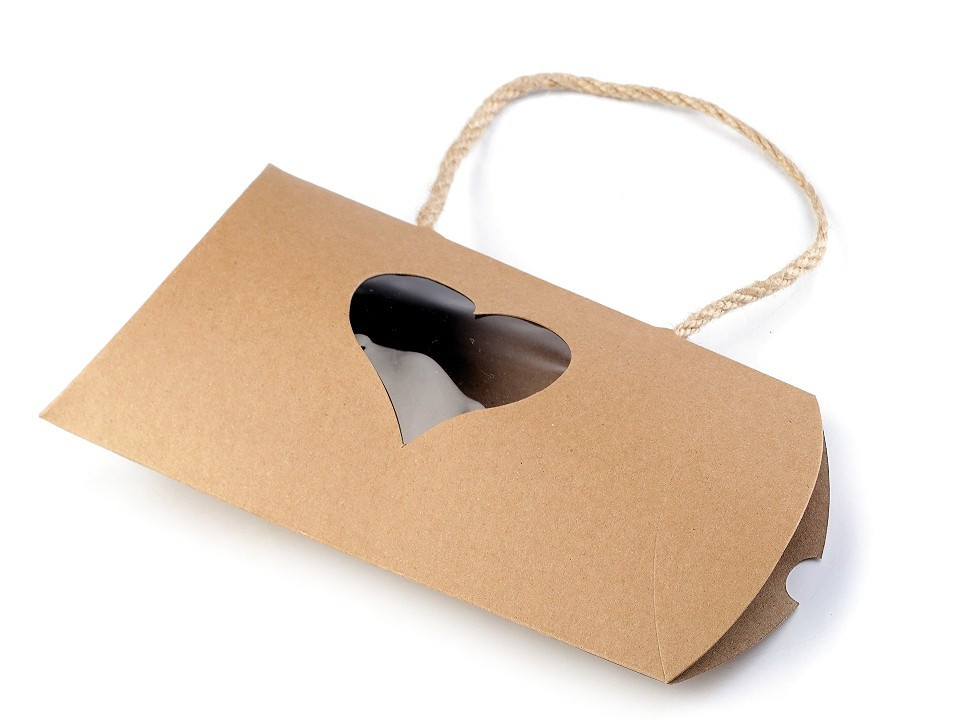 Originální papírová krabička nadchne svým designem všechny zamilované či milující lidi. Na přední straně má plastový průhled ve tvaru srdíčka. Díky praktickému, avšak elegantnímu provázkovému uchu, ji snadno uchopíte.