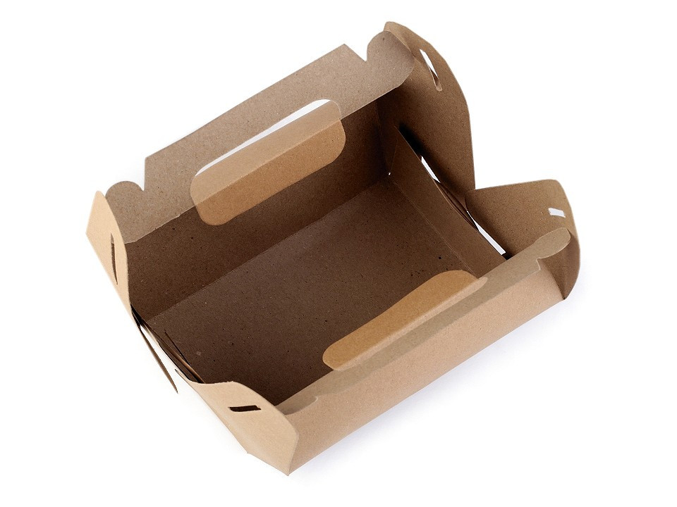 Papírová krabička se díky praktickému uchu stala nezbytnou součástí výslužek ze svateb či různých oslav. Lze ji také použít např. na kosmetiku či jiné drobnější dárky. Krabičku můžete dále dozdobit flitry, glitry, krajkou, samolepícími ozdobami apod.