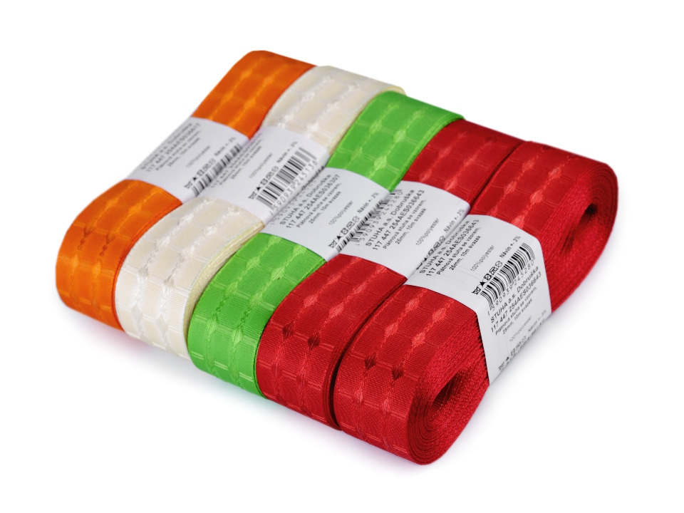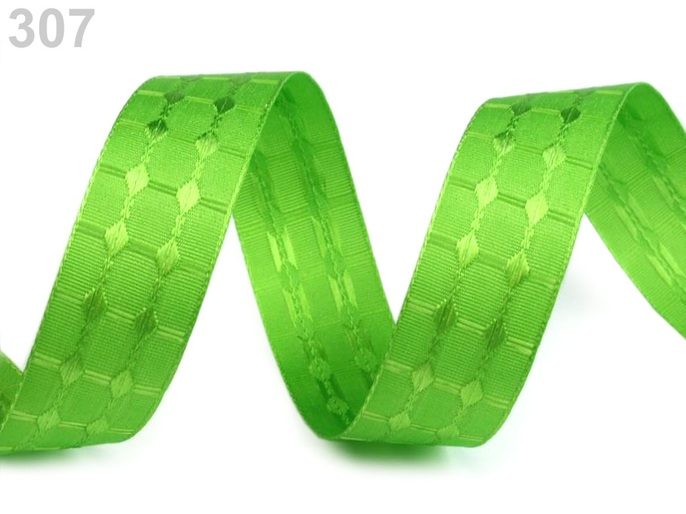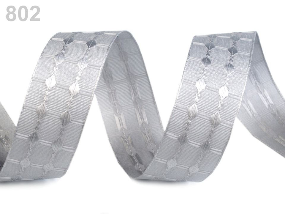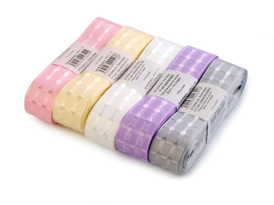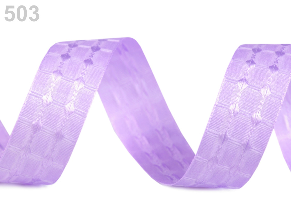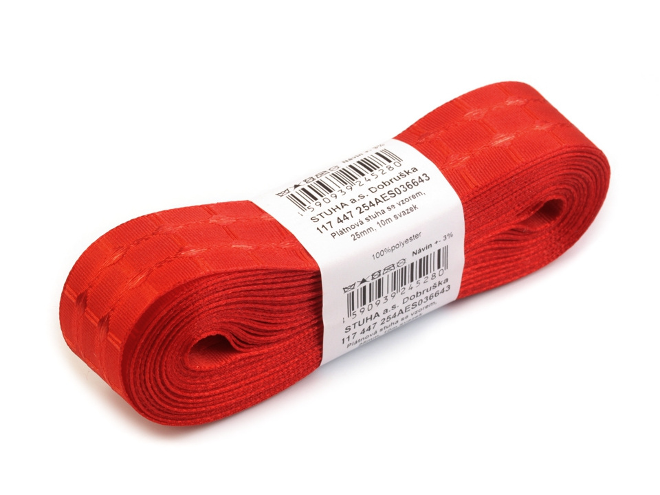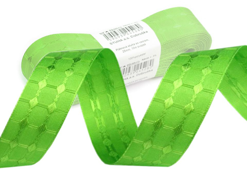 Plátnová stuha je určena k dekoračním účelům. Zdobí ji zajímavý vzor, který se leskne.
