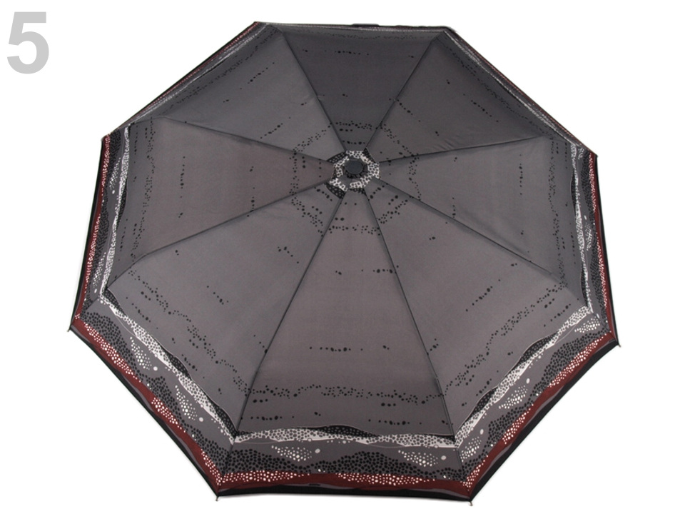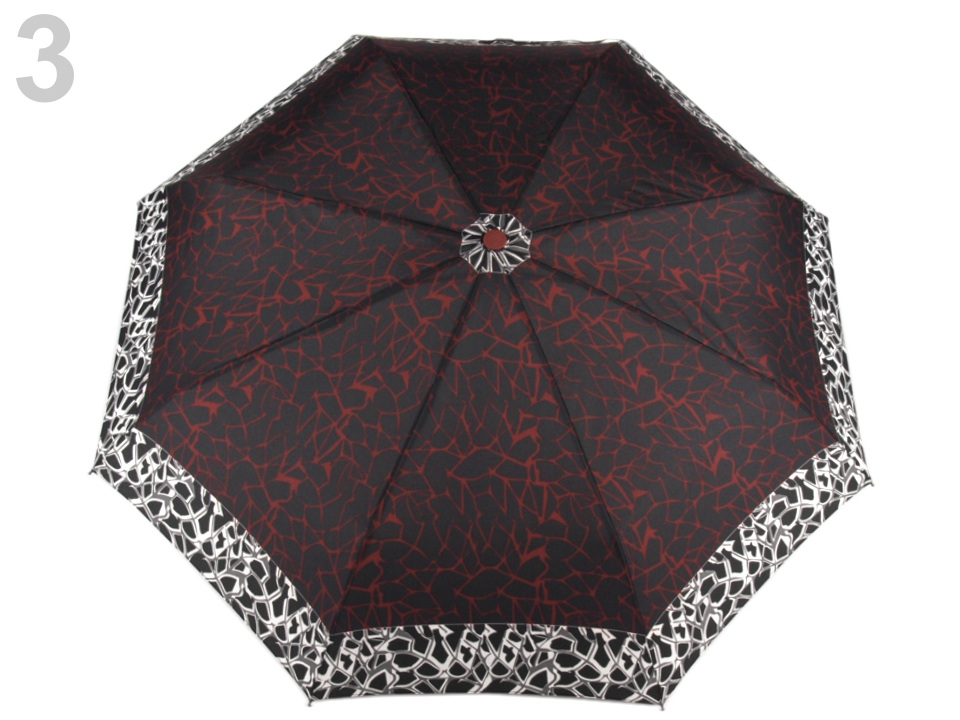 Plně automatický skládací deštník je vyrobený z kvalitního materiálu. Atraktivní potisk má barevné zvýraznění okrajů.
