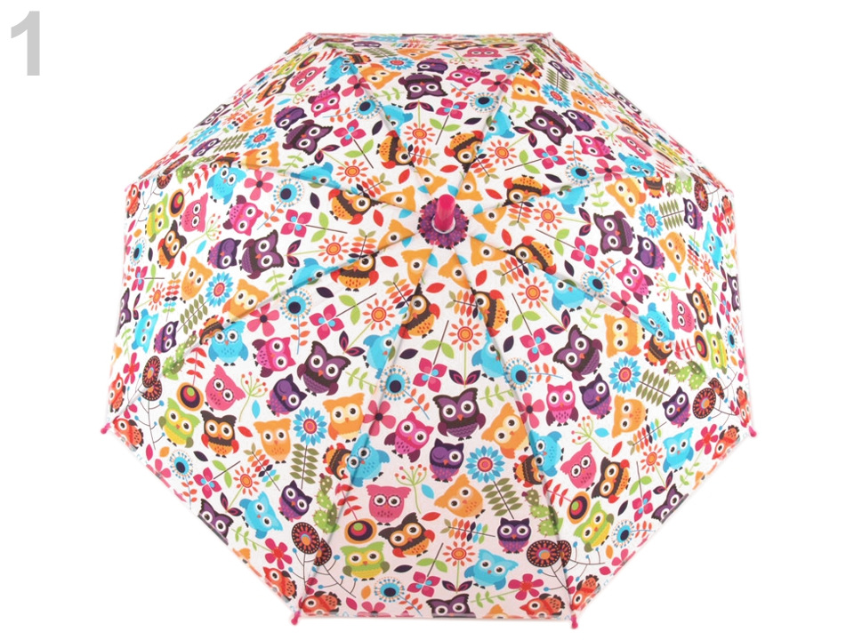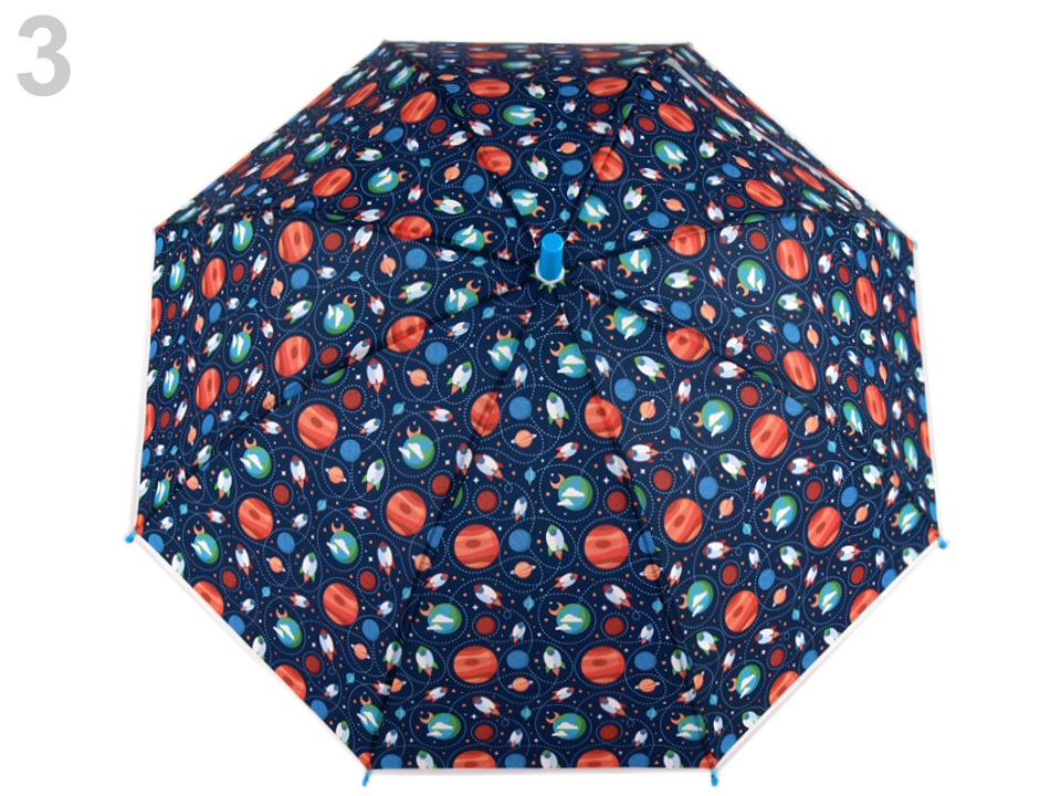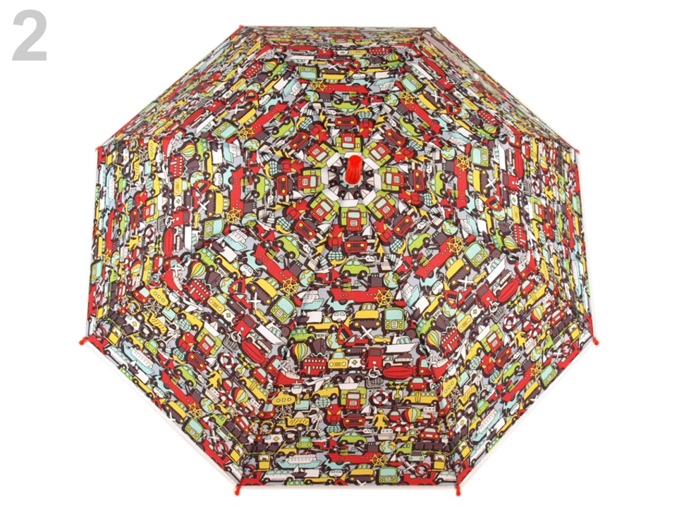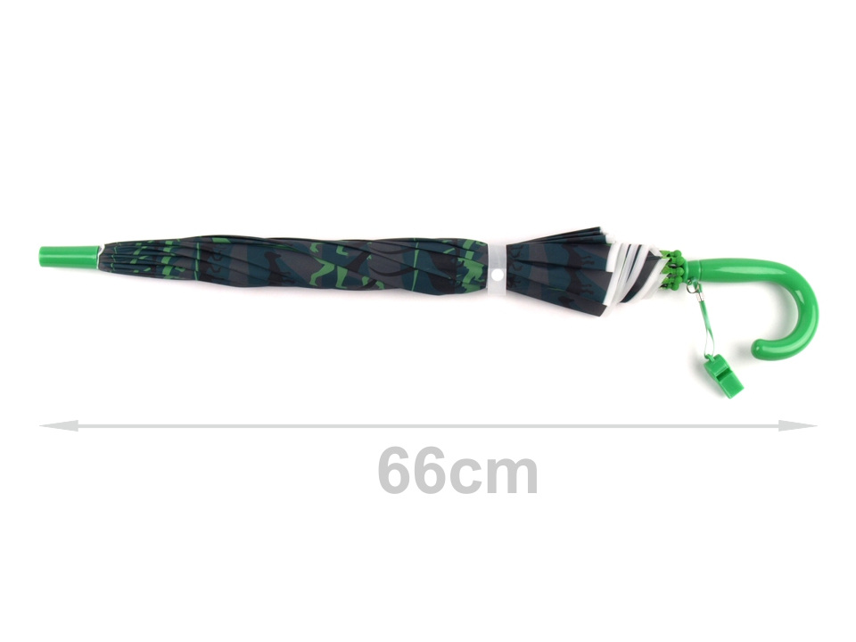 Dětský vystřelovací deštník s veselým, pestrobarevným potiskem. Na rukojeti má píšťalku, která nadchne každé dítě.