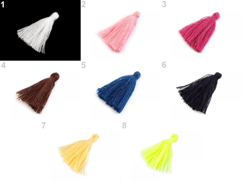 Použití: Střapce můžete použít jako ozdobu na tašky, kabelky, pouzdra nebo klíče. Jsou vhodné i na zdobení klobouků, čepic, polštářů a ubrusů. Vytvoříte si z nich originální náramky, náušnice a také náhrdelníky.