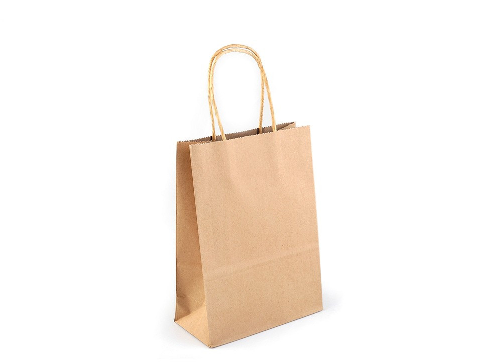 Jednoduchá dárková taška v přírodní barvě je kvalitní, vyrobená z pevnějšího papíru. Ucha jsou kroucená a také vyrobená z papíru. Je vhodná nejen k darování dárků, ale i k dozdobení. Můžete ji pomalovat nebo na ni nalepit např. flitry, glitry a různé ozdoby na scrapbooking. Taška je vhodná i k firemním účelům, může se nechat potisknout.