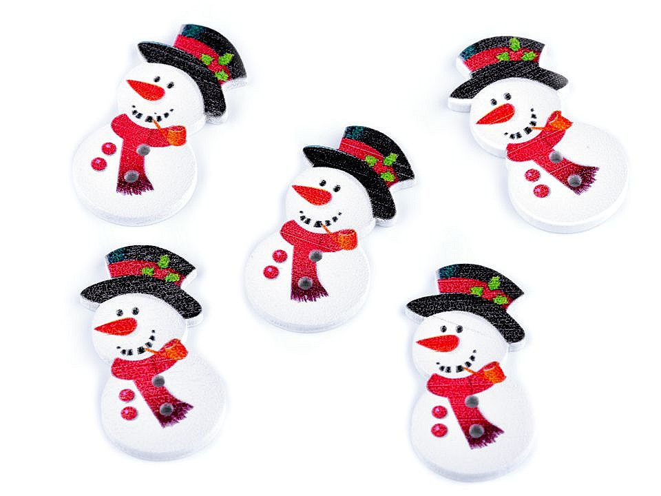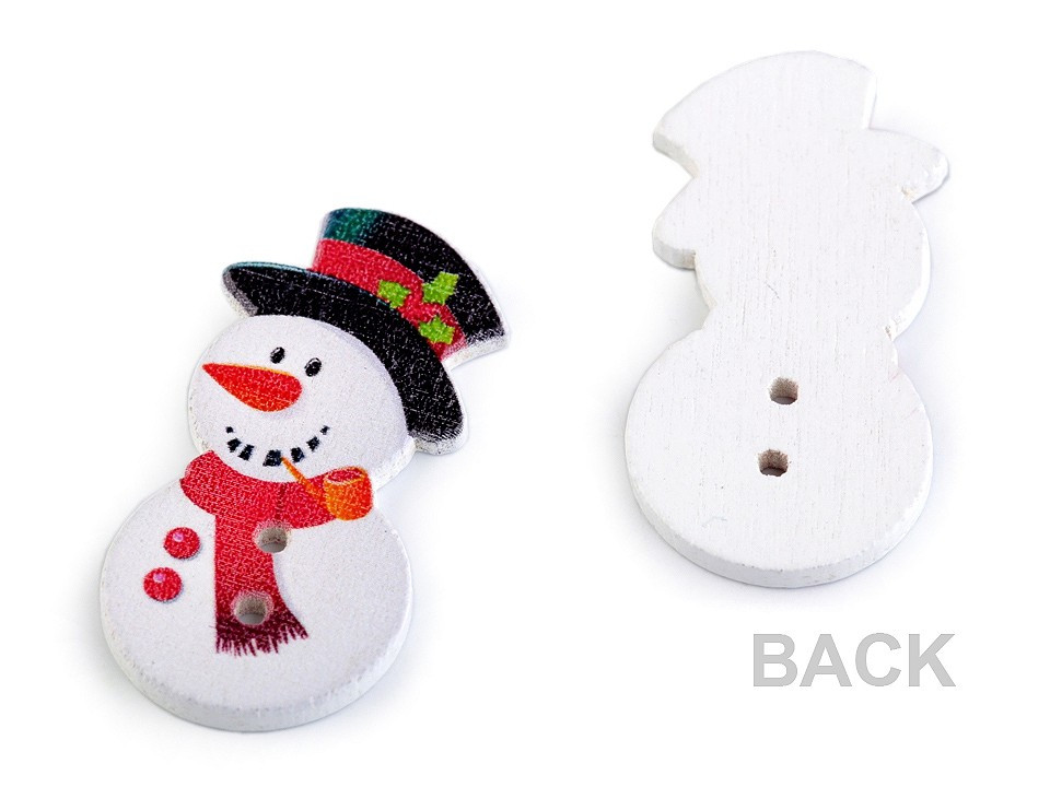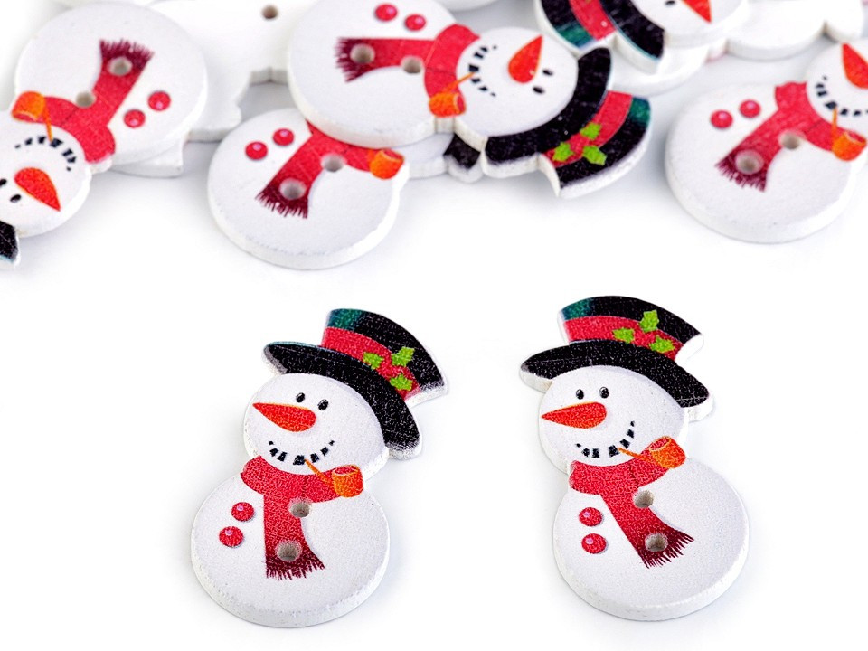 Dřevěné dekorační knoflíky v podobě sněhuláka jsou roztomilou zimní dekorací. Knoflíky využijete k aranžování např. svátečního stolu. Můžete je nalepit na dřevěné kolíčky. Využijete je také ve scrapbookingu, kde s nimi můžete ozdobit rámečky, přáníčka, jmenovky, pozvánky, deníky apod.