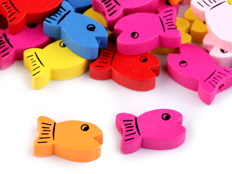 Mix korálků barevných rybiček s oboustranným potiskem potěší nejen korálkářky, ale i děti. Můžete je navlékat na silon nebo tenkou voskovanou šňůrku s dalšími korálky. Šňůrku můžete zdobit i uzlíky, sami budete nadšeni z originálního náhrdelníku, který vám vznikne.