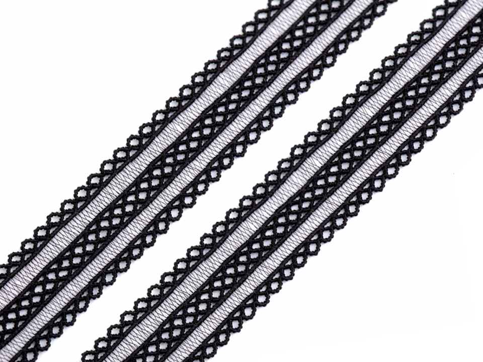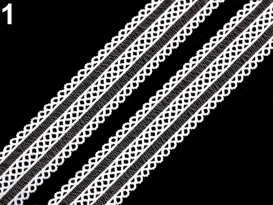 Ozdobná pruženka s originálním designem, připomíná romantickou krajku. Okraje a prostřední část tvoří očka, která jsou prokládána dvěma souběžnými pruhy.