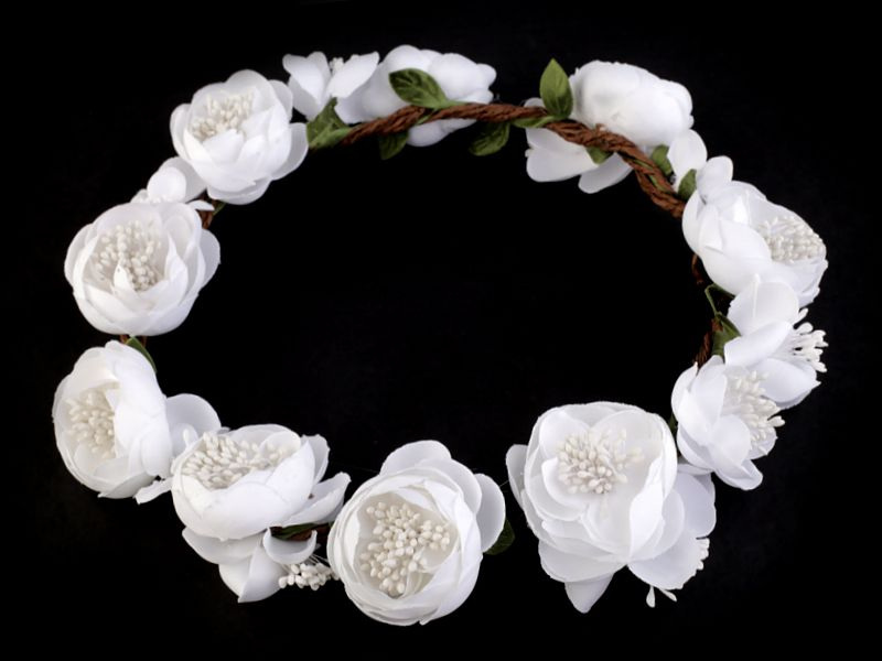Květinový věneček v nevinné bílé barvě využijí dívky, které čeká První svaté přijímání. Neměl by chybět v účesu žádné družičky.