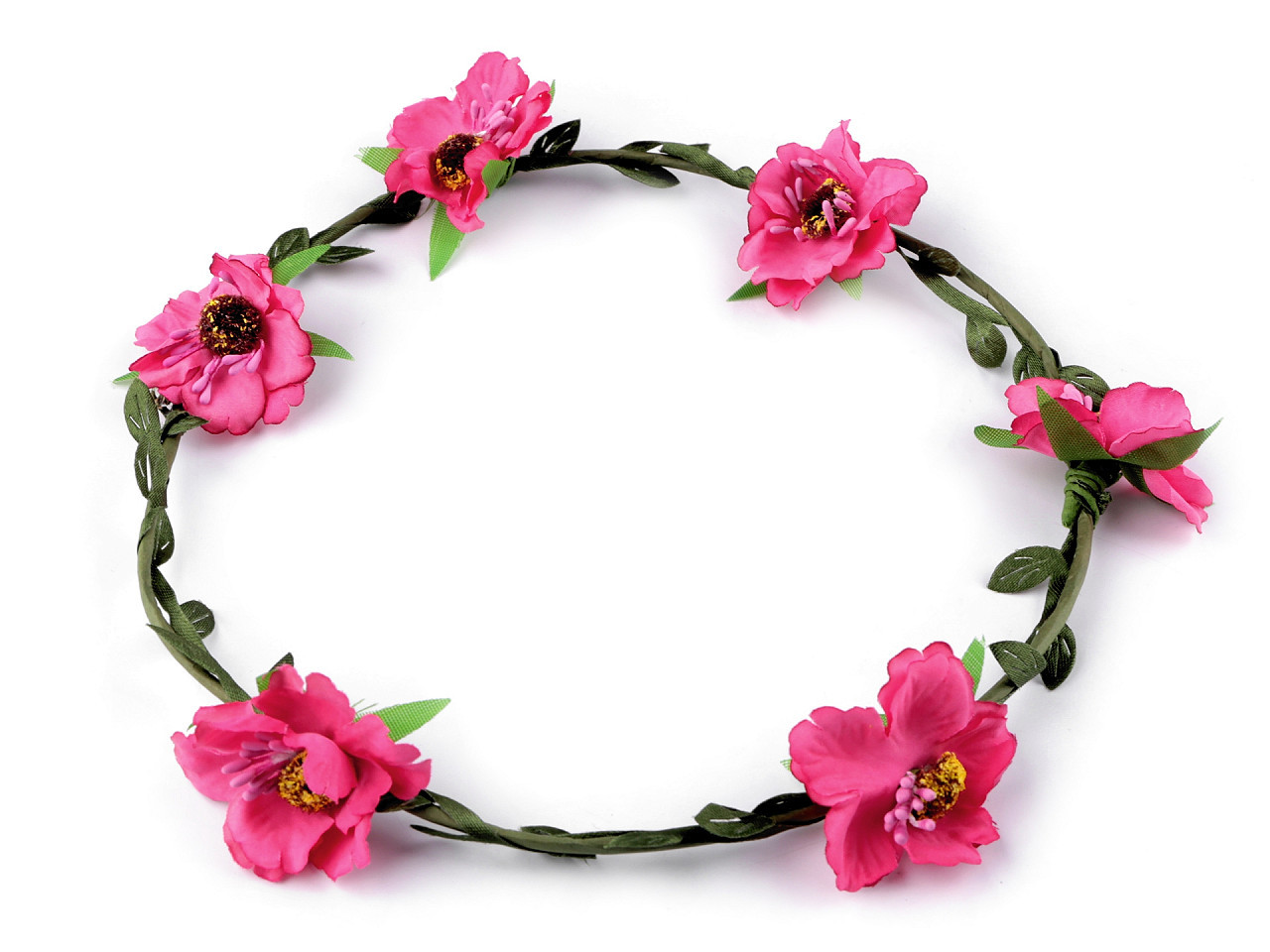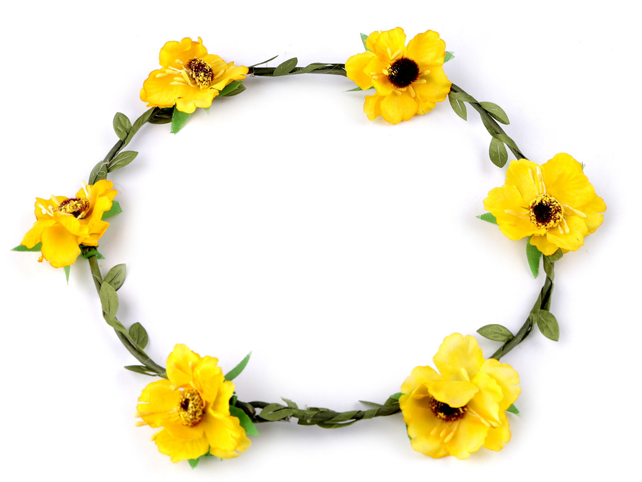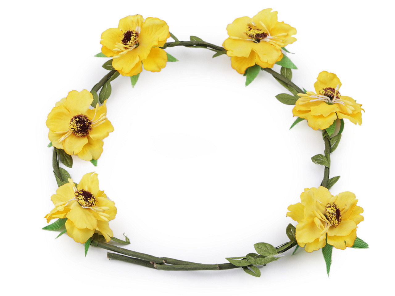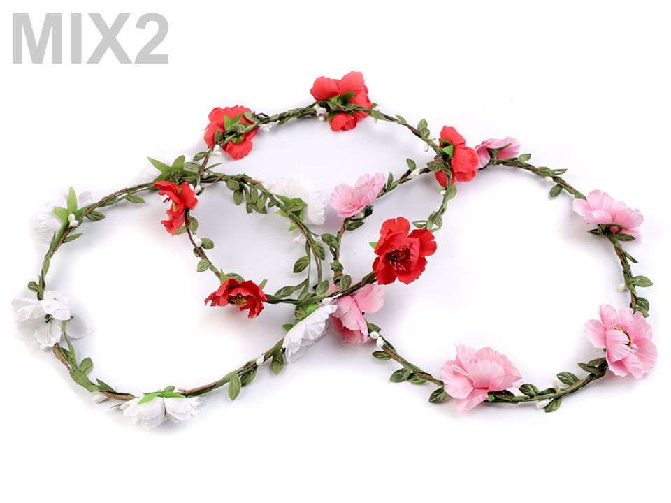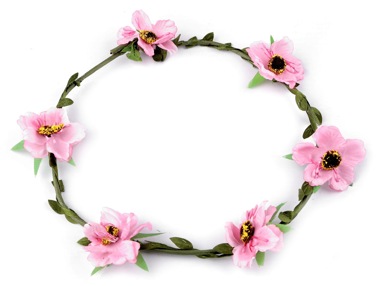 Můžete jej nosit jako ozdobu vlasů nebo použít k dekoračním účelům. Květy vypadají jako živé. Jsou připevněné k drátěné kostře, která je obalená papírem a ovinutá prýmkem s lístečky. Díky drátěnému základu můžete věneček tvarovat, velice příjemně se nosí.