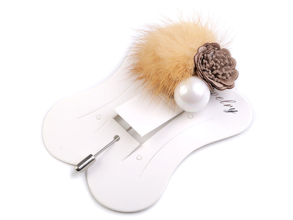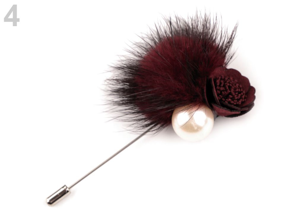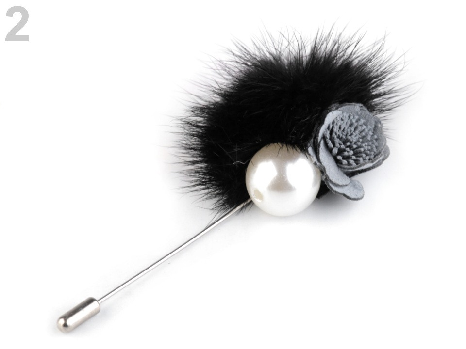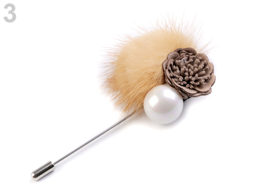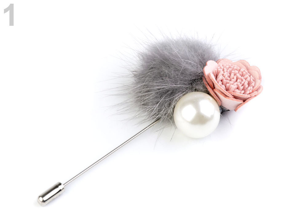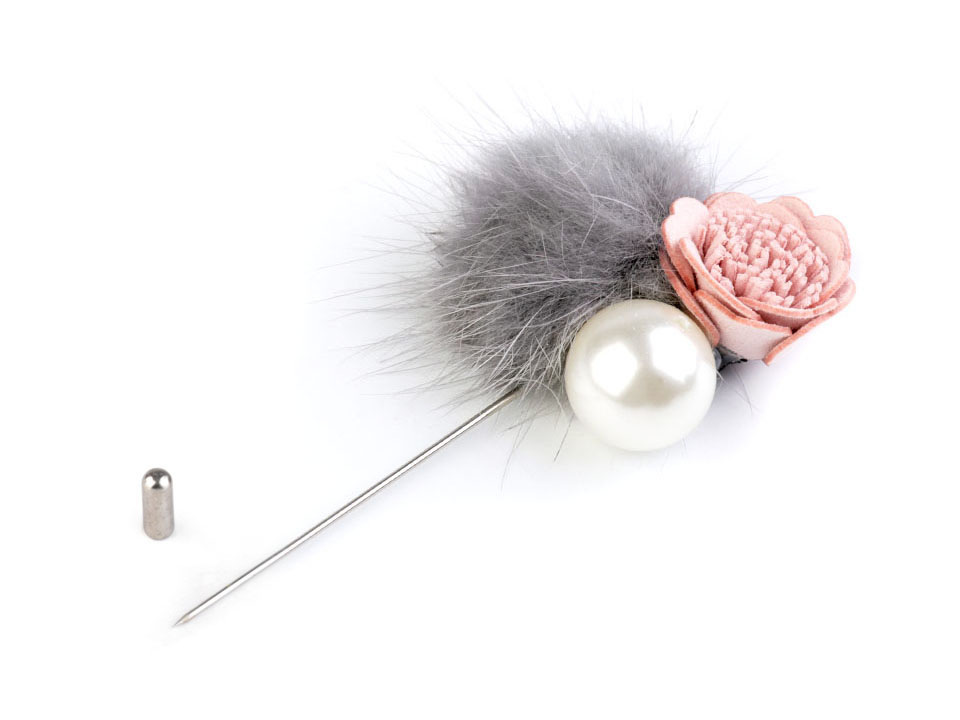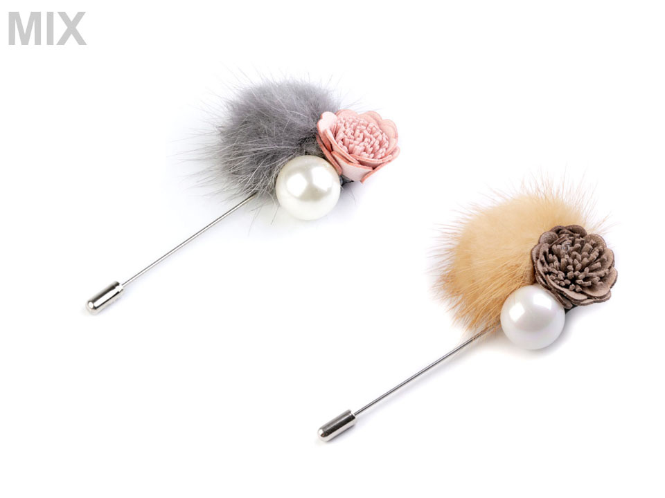 Elegantní ozdobný špendlík s bambulkou z pravé kožešiny dozdobený květem z eko kůže a malou polyesterovou bambulkou bude ideálním doplňkem na klobouk, tašku, batoh a další místa, která vás napadnou. Špendlík vkusně doladí váš outfit. Bude netradičním módním doplňkem každé elegantní ženy či dívky.