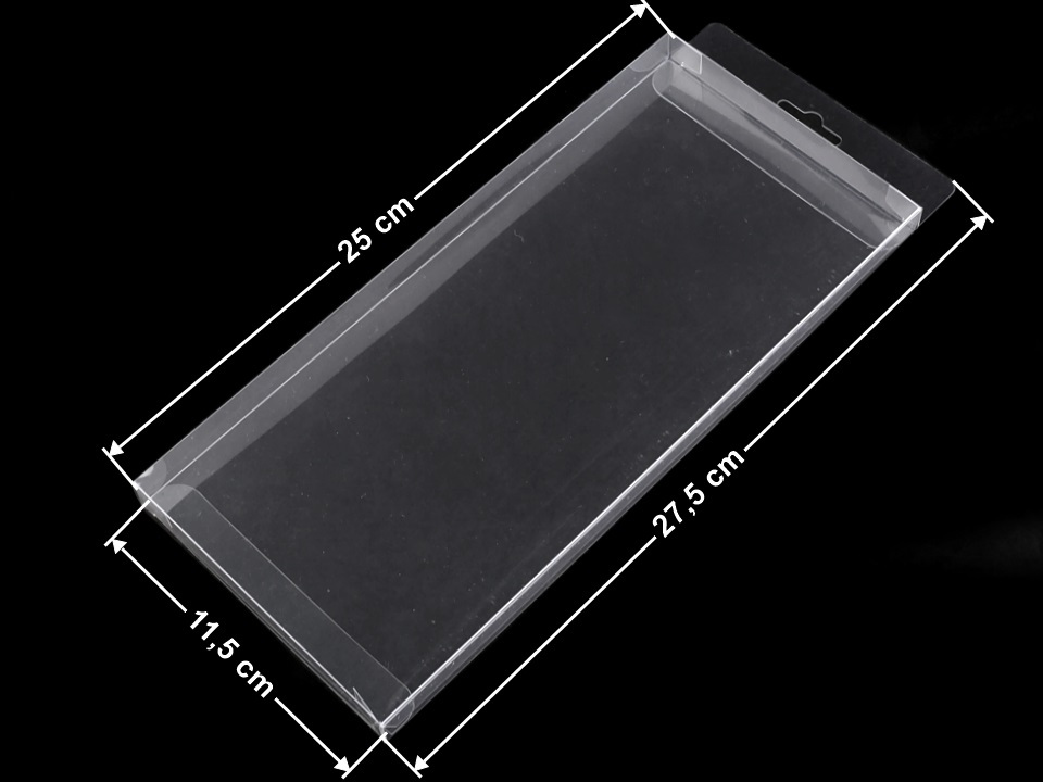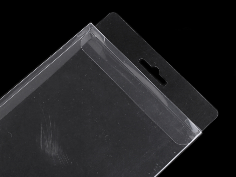 Plastovou průhlednou krabičku se závěsem využijete k dárkovému balení předmětů. Můžete ji využít např. na zabalení drobného textilu např. rukavic nebo drobné dekorace např. dřevěné dekorační ozdoby apod.