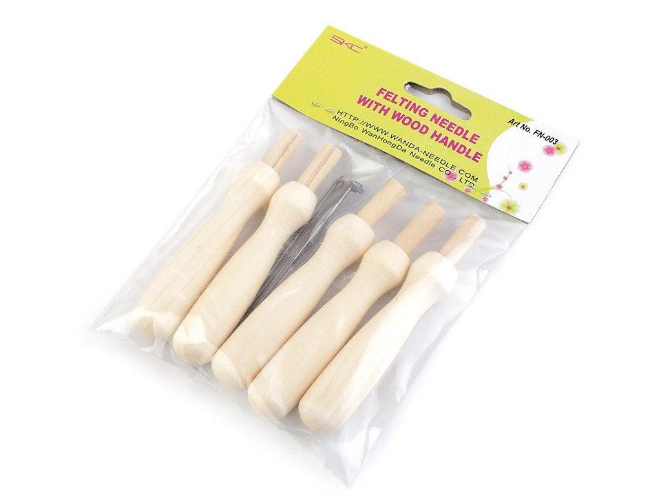 Bez jehel na plstění se neobejdete, pokud plstíte technikou vypichování. Mají praktické dřevěné rukojeti, jež se pohodlně drží v ruce, tudíž odpadá náročné držení jehly v prstech.