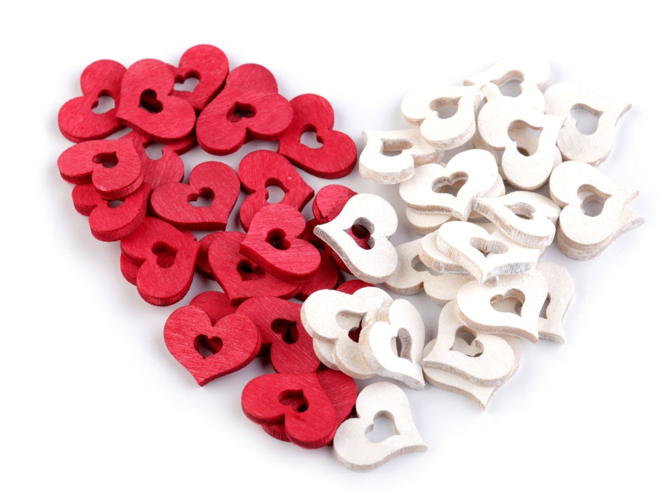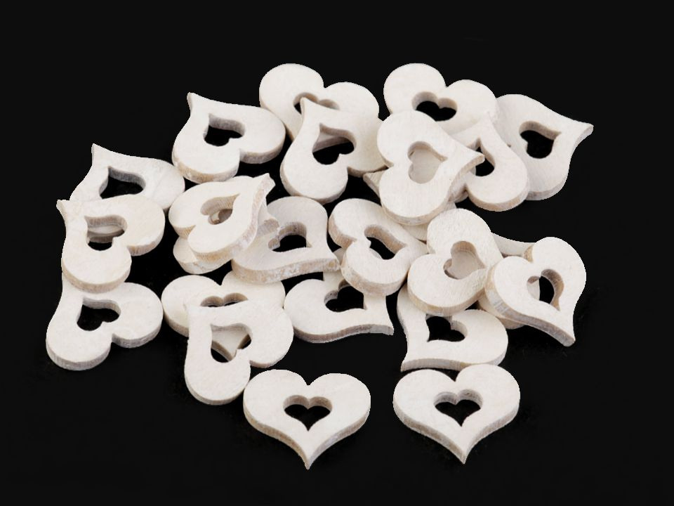 Dřevěná dekorační srdíčka působí díky "baňatému" tvaru neuvěřitelně romanticky. Uprostřed mají výsek menšího srdíčka, který umožňuje navázání na provázek.