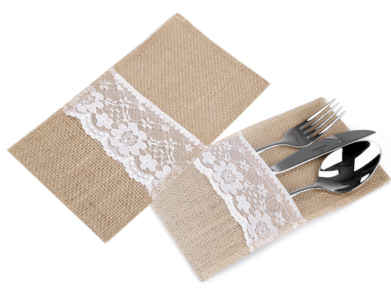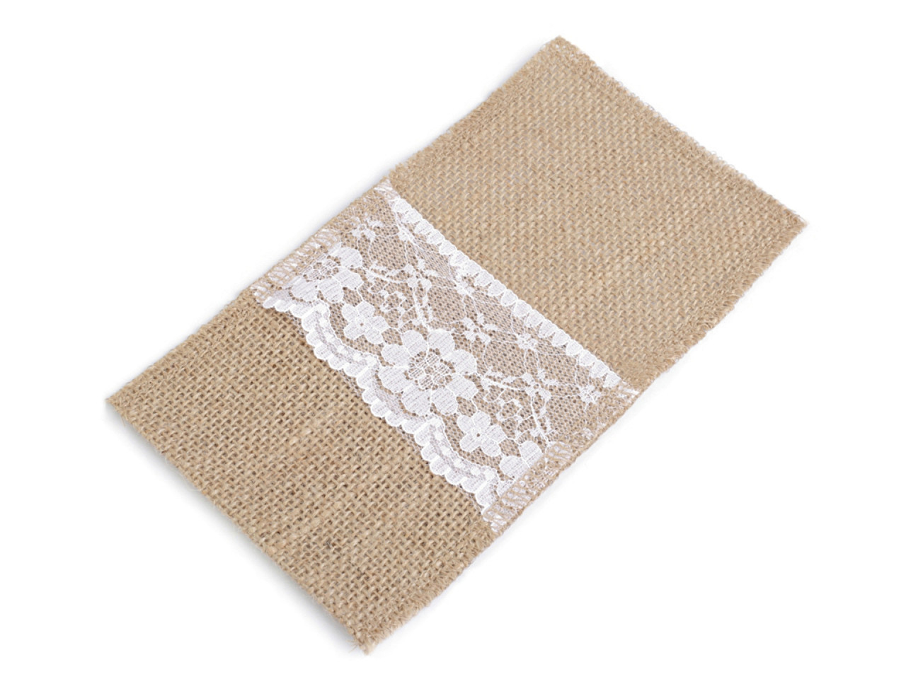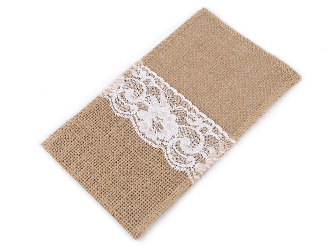 Uchvátila vás juta? Máte rádi dokonale prostřený stůl s vytříbenými detaily? V tom případě nezapomeňte na jutovou kapsu na příbory, která je oživena krajkou. Kapsa je dostatečně prostorná na celý příbor.