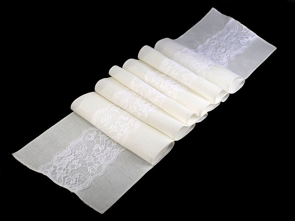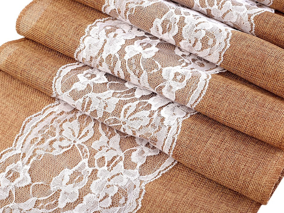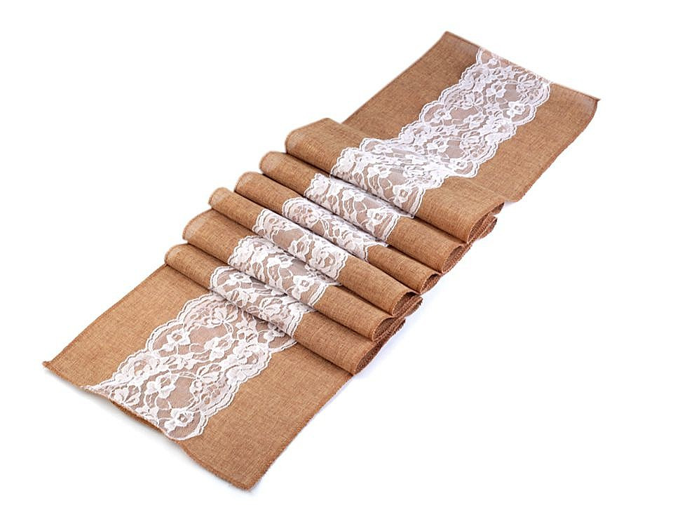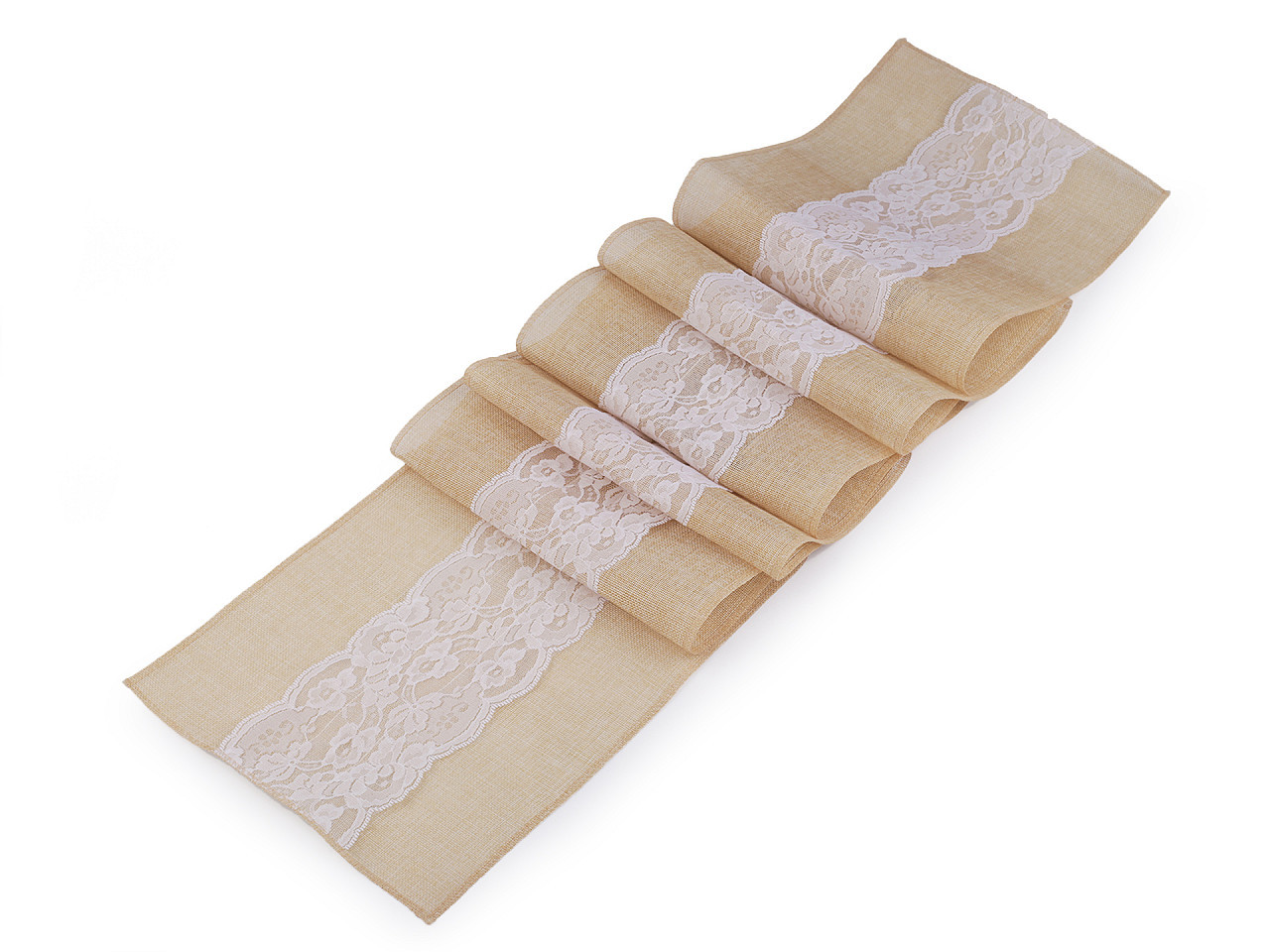 Vintage běhoun vám zútulní každý interiér. Připomíná jutu. Jeho střed zdobí romantická jemná krajka.