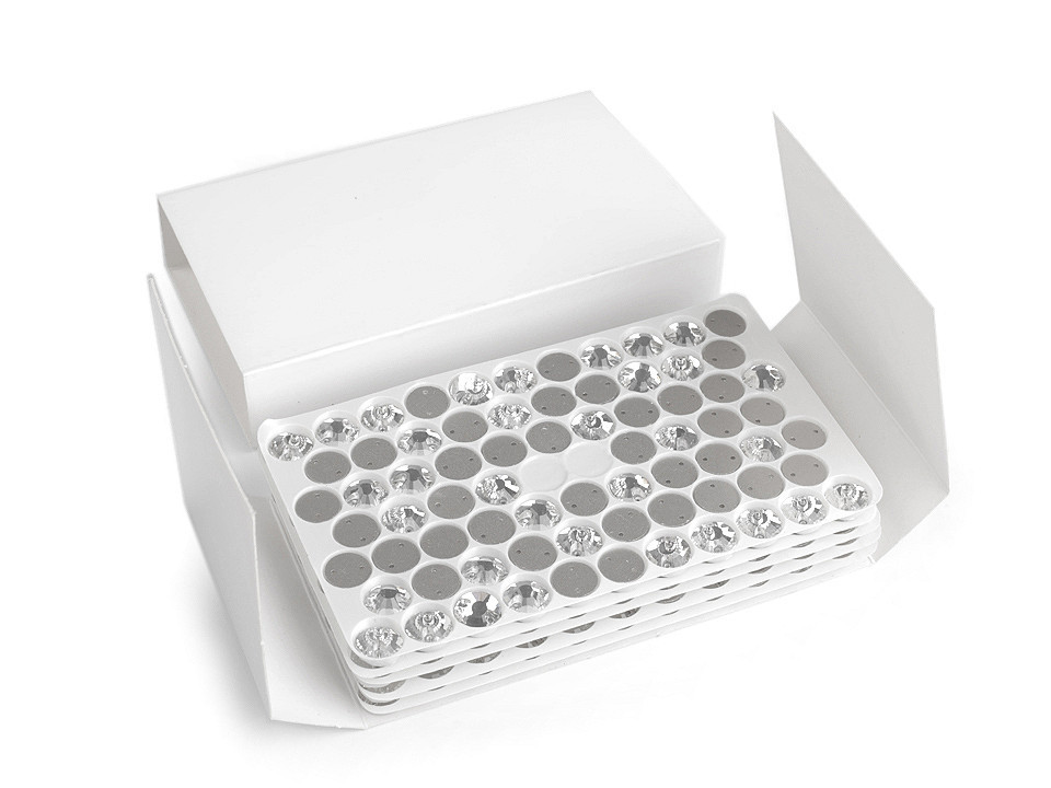 Skleněné kamínky mají precizní výbrus, díky kterému se efektně třpytí. V každém kamínku jsou dva otvory, které umožňují snadné našívání. Oceníte je při výrobě šitých šperků nebo zdobení oděvů. Kamínky oslnivě vyniknou na společenských šatech, halenkách a doplňcích, jako jsou kabelky, psaníčka, klobouky apod.