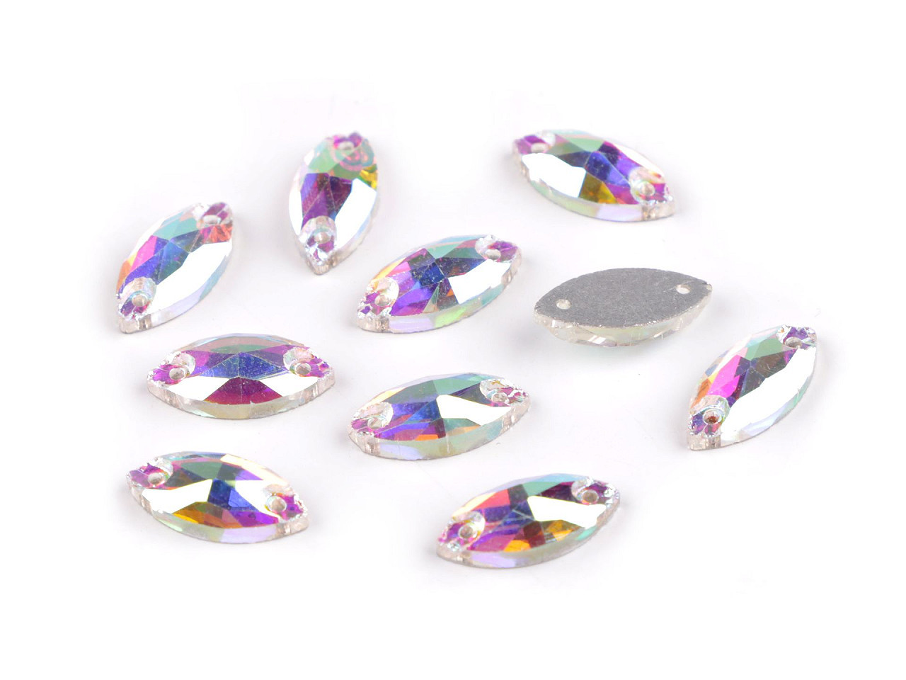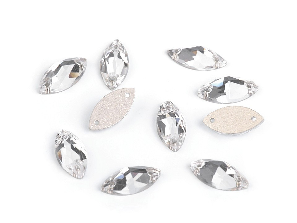 Skleněné kamínky ve tvaru navety mají precizní výbrus, díky kterému se efektně třpytí. V každém kamínku jsou dva otvory, které umožňují snadné našívání. Na rubové straně jsou opatřeny krycí barvou, která zabraňuje zbarvení dle přiloženého podkladu. Oceníte je při výrobě šitých šperků nebo zdobení oděvů. Kamínky oslnivě vyniknou na společenských šatech, halenkách a doplňcích, jako jsou kabelky, psaníčka, klobouky apod.