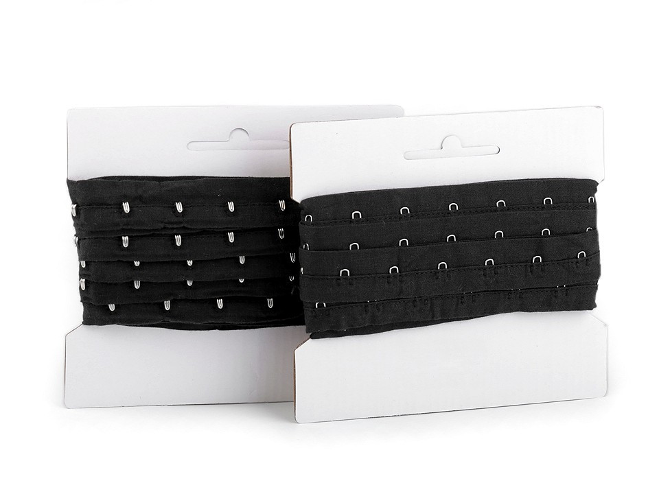 Korzetové zapínání je užitečný pomocník v textilní galanterii. Na kvalitním popruhu jsou pevně připevněny háčky. Balení obsahuje dvě cívky, které obsahují háčky a protikusy (vyrobeny z oceli odolávající praní).