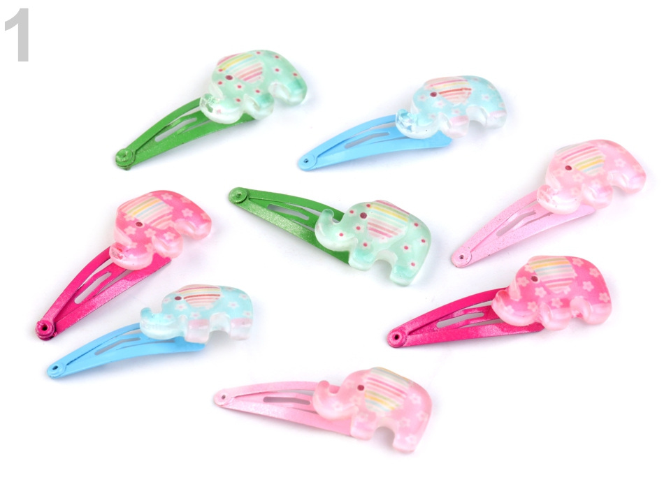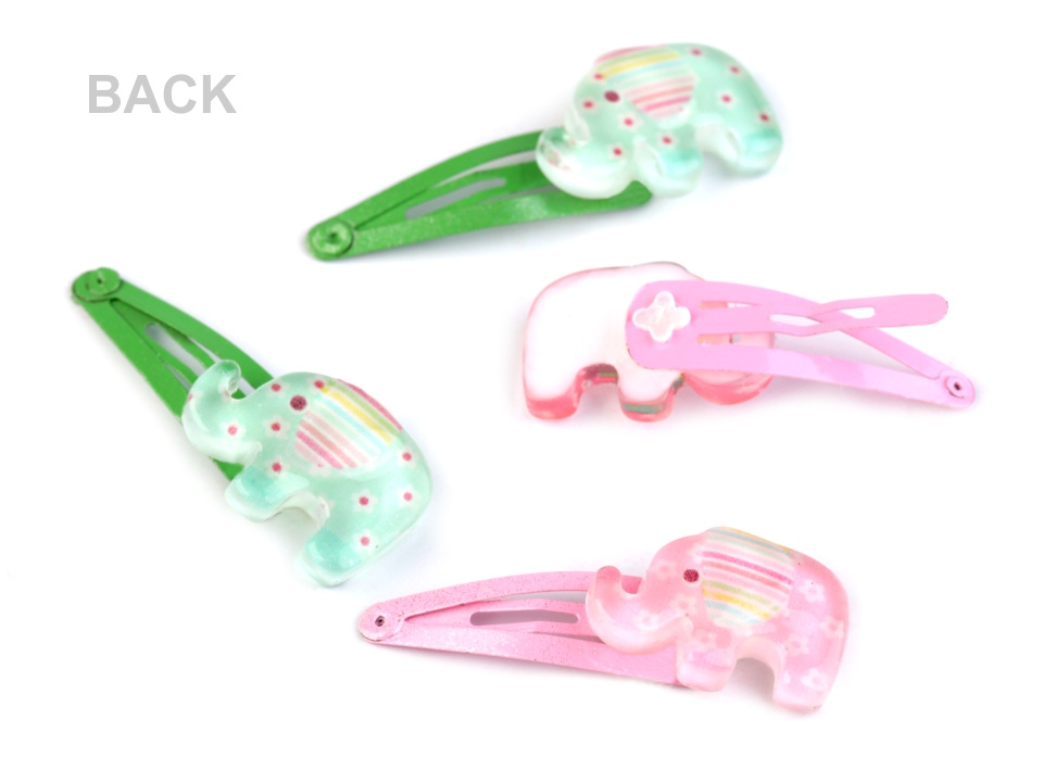 Pukačky s ozdobou něžného slona vesele ozdobí účes malých i velkých parádnic. Pukačky jsou malé, udrží i jemný pramínek dětských vlásků. Slon má vrchní vrstvu z transparentního plastu s detailním potiskem, je velice zajímavý.
