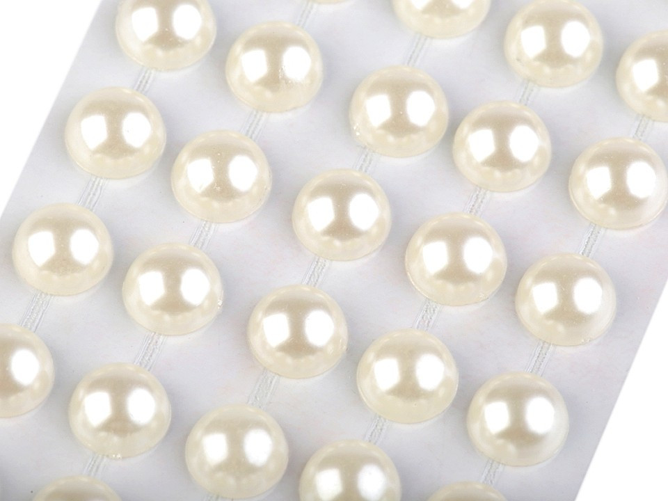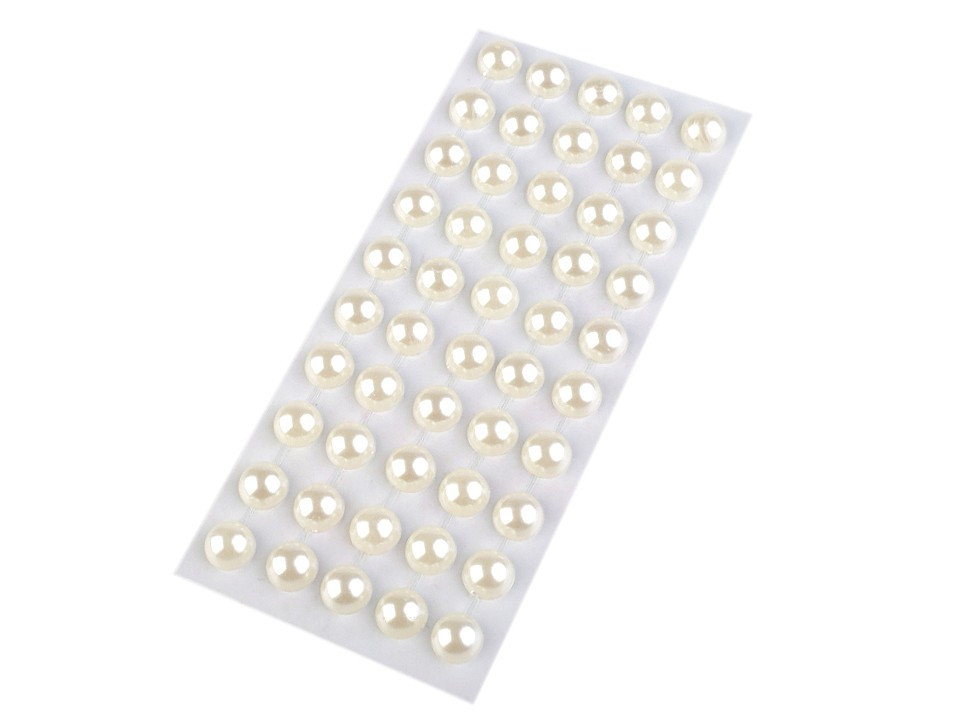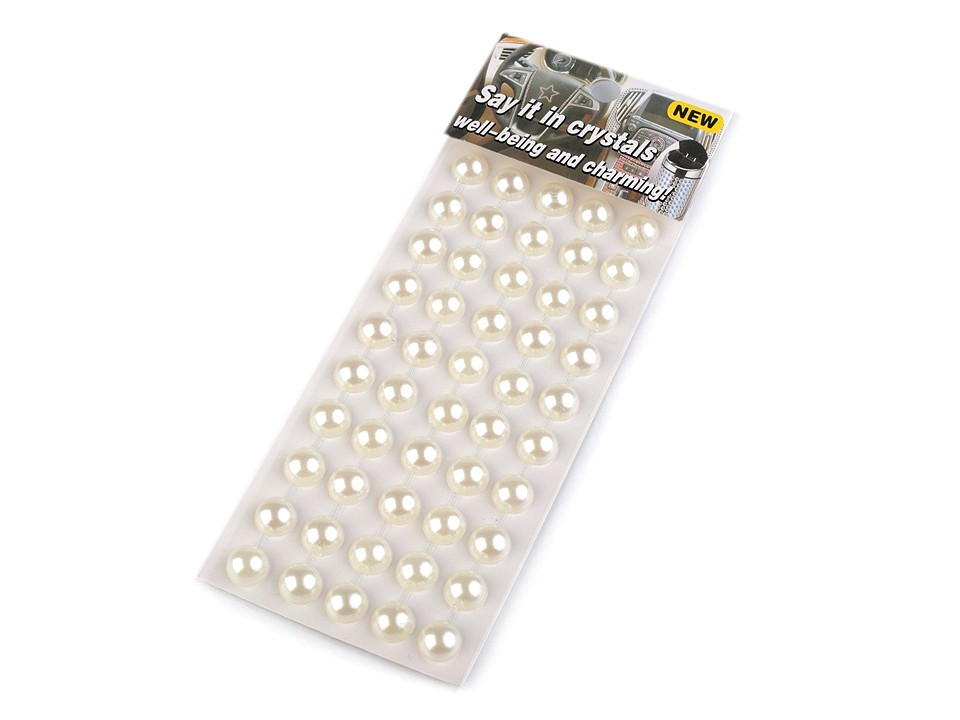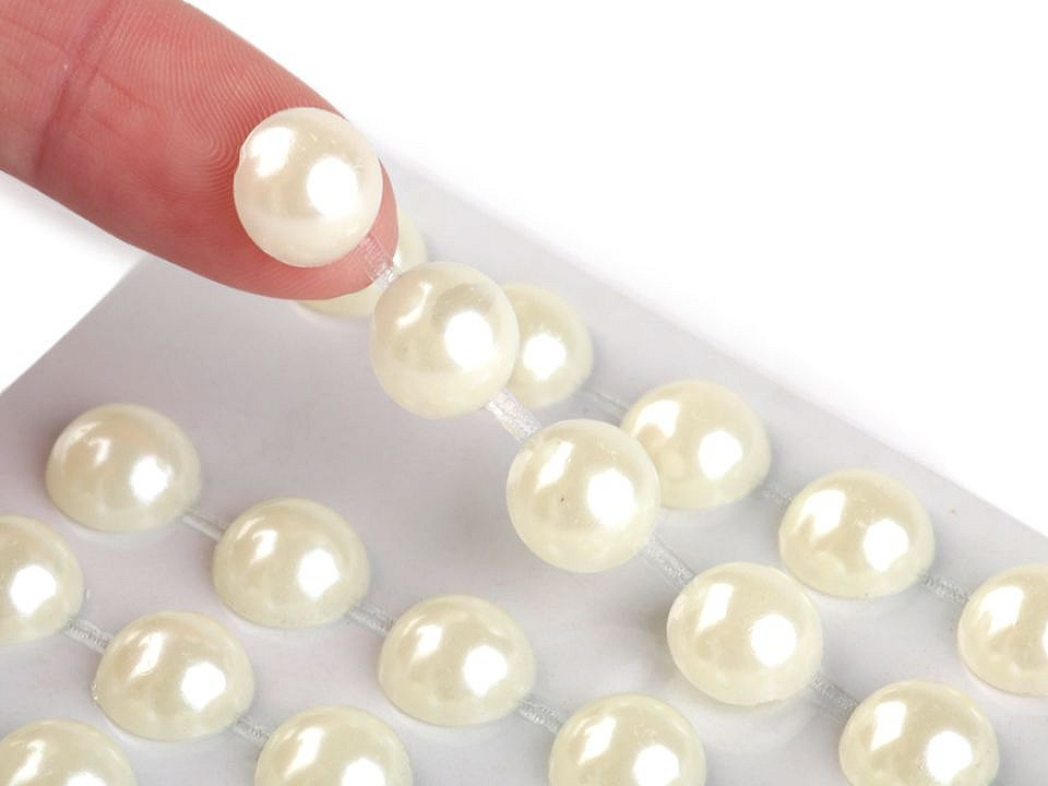 Perly v řadách jsou navzájem spojeny lepícím proužkem, takže tvoří pásky. Celkem zde najdete 5 pásků (v každém je 10 perel). Můžete je i jednotlivě nastříhat.