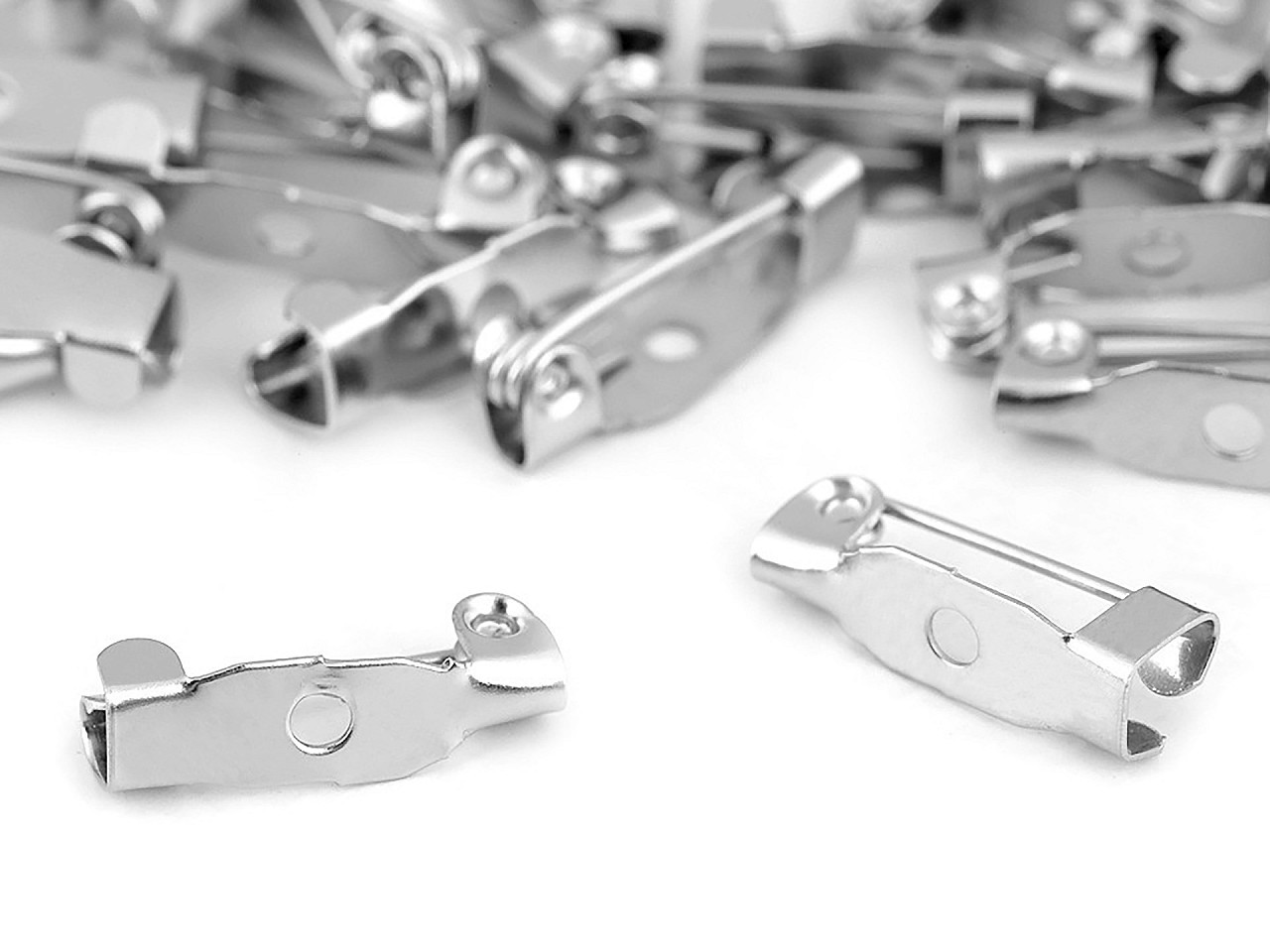 Balení obsahuje 10 kovových můstku se zicherkovým zapínáním. Můstek má 1 otvor pro přišití či přidrátování.