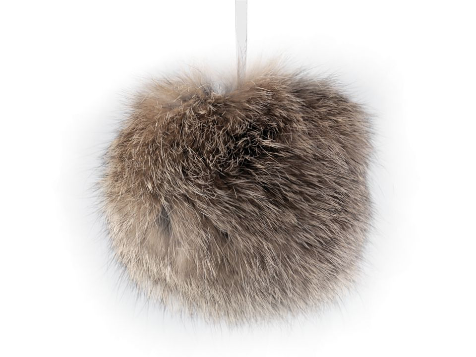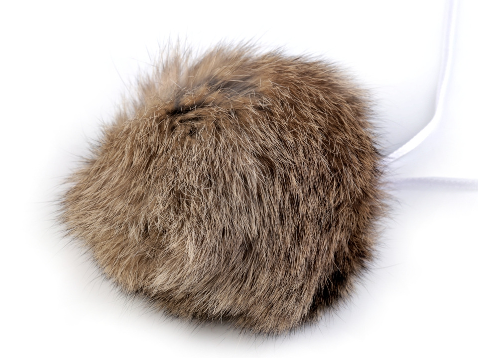 Kožešinová bambulka je jemná a velice příjemná na dotek. Saténové stužky jsou široké 0,3 cm, dlouhé 14 cm.