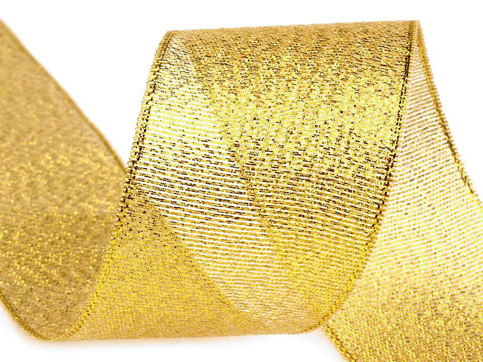 Stuha s lurexem v šíři 38 mm má široké uplatnění. Můžete ji využít nejen k šití, dekoraci, aranžování, ale také s ní můžete elegantně zabalit dárek. Tato stuha má zpevněný okraj bez použití drátku. Její povrch je díky lurexu hrubší a působí luxusněji.