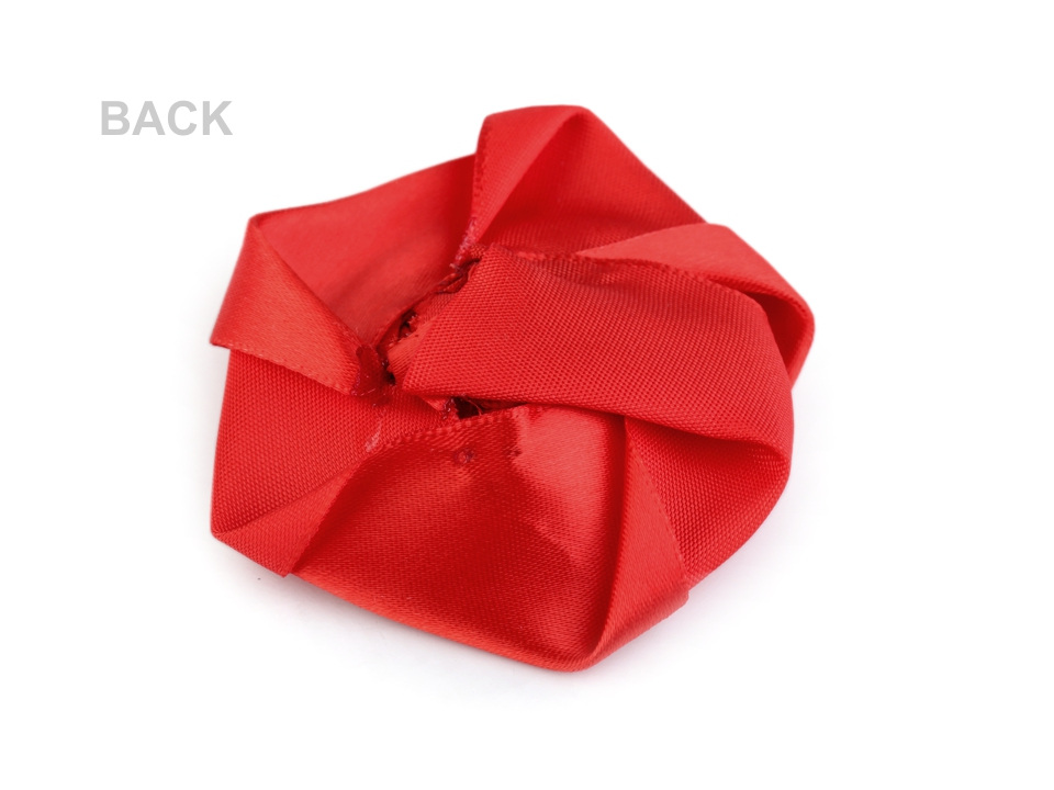 Skládané růže jsou vyrobené z kvalitní saténové stuhy. Mají jemný lesk.