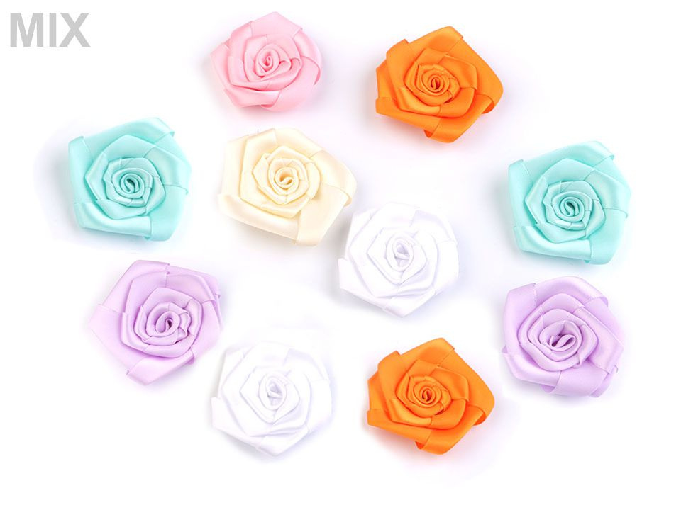 Použití: Růže jsou vhodné na ozdobení plesových šatů, svatebních šatů i šatů družiček, na výrobu broží, ozdob do vlasů apod. Využití najdou i ve floristice - například ve věncích nebo ve svatebních kyticích. Květiny můžete přišívat nebo lepit.